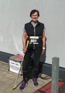 Erika Schröppel (82) vom LT Urbach war die insgesamt älteste Teilnehmerin am Start. Dass sie noch sehr agil und flott unterwegs ist, unterstrich sie mit einer Laufzeit von nur 1:33:37 Std. auf der Nordic Walking Strecke und platzierte sich damit sogar noch in die Top 10. Herzlichen Glückwunsch!