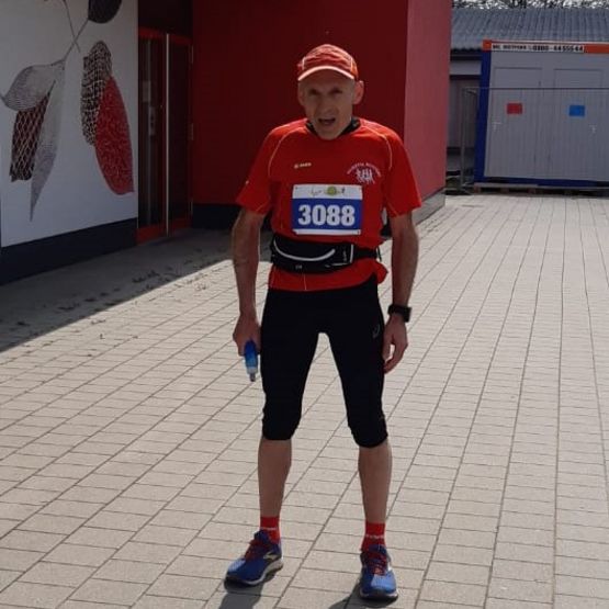 Frank wog vor 4 Jahren noch 160 Kilogramm, war extrem fettleibig, hatte brutal schlechte Blutwerte und erhielt die klare Diagnose Diabetes. Und das im Alter von 44 Jahren! Es war Alarmstufe Rot und er beschloss etwas zu verändern. Das Ziel war irgendwann wieder in den zweistelligen kg- Bereich zu kommen. Durch Ernährungsumstellung nahm er schon binnen eines Jahres ganz 50 kg ab. Doch dann stagnierte es und er kam nicht unter die angestrebten 100 kg. Er wusste, dass er es nur durch die Ernährungsumstellung allein seinen Zielkorridor nicht erreichen würde. Doch welche Sportart funktioniert mit diesem Gewicht? Laufen erschien ihm da am einfachsten. Also fing er mit dem Laufen an und setzte sich das Ziel, in im Juni 2018 den Stuttgarter Halb-Marathon zu finishen. Auf dem Weg dorthin lief er im April 2018 seinen ersten Wettkampf überhaupt beim 10km- Lauf in Lichtenwald. Seine Werte waren bis dahin so gut, dass er keine Medikamente mehr einnehmen musste. Doch er brachte immer noch über 100kg auf die Waage. Im Juni finishte er dann, am Ende aller Kräfte, den Stuttgarter Halbmarathon in einer Zeit von 2:35:27 Std. Die Schmerzen gingen vorüber, aber der Stolz blieb! Frank hatte sich damit auch unter die 100kg gekämpft. Aber es sollte weiter gehen. 90kg wurden als nächstes Ziel gesetzt. Das Laufen half ihm in ein neues Leben. Er verbesserte nicht nur seine Laufzeiten sondern auch seine körperlichen Werte und erreichte im Juli 2019 mit 90kg eine neue Lebensqualität. Jetzt ging es darum im BMI-Index in den Normalbereich zu kommen. Das wäre einem Körpergewicht von 85kg erreicht. Da der Laufsport durch die stetigen Fortschritte mittlerweile einen festen Platz im Wochenplan gefunden hatte. Im September 2019, fast 3 Jahre nach dem negativen Höhepunkt, hatte Frank sein Körpergewicht fast halbiert, weist sei dem ein durchschnittliches Gewicht von 85 kg auf und hat Blutwerte die durchweg im Optimalbereich liegen.