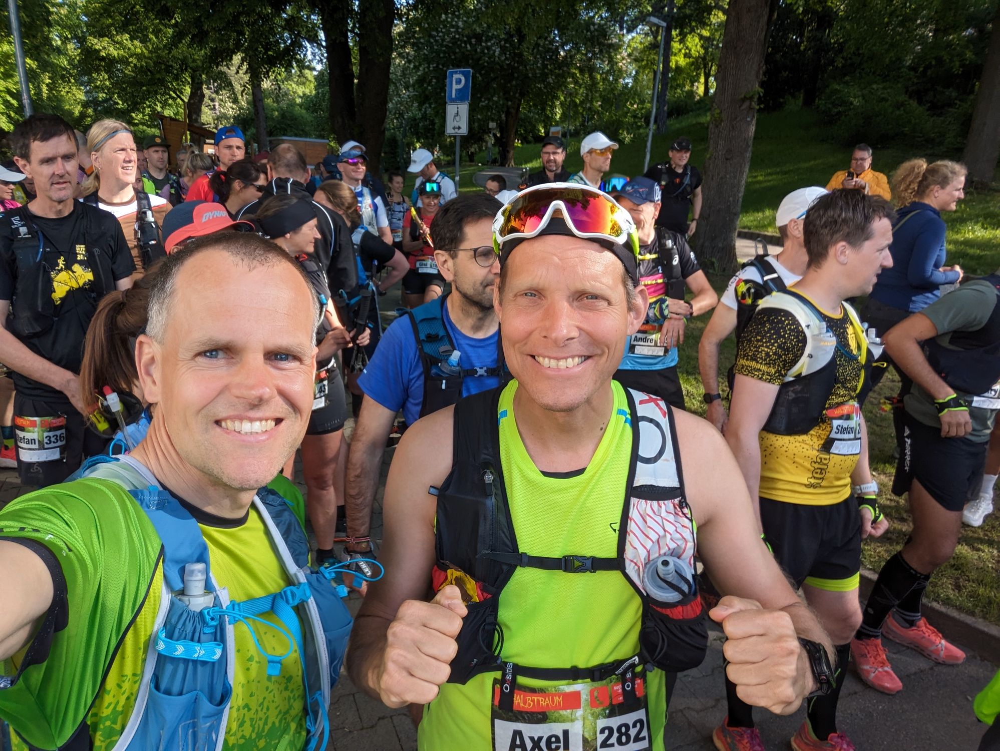Der Halb-Traum wurde 5 Stunden später, also um 9 Uhr gestartet. Hier gingen nochmal knapp 200 Teilnehmer/innen auf die Strecke. Der LIWA-LaufTreff präsentierte sich hier mit gleich 5 Damen und 6 Herren als eines der größten Teams. Für Andrea und Chrissi ging es dabei erstmal nur ums Ankommen, denn es sollte ihr erster Lauf über eine Ultra-Distanz überhaupt sein. Für alle anderen hieß es einfach laufen, Spaß haben und die tolle Strecke genießen.