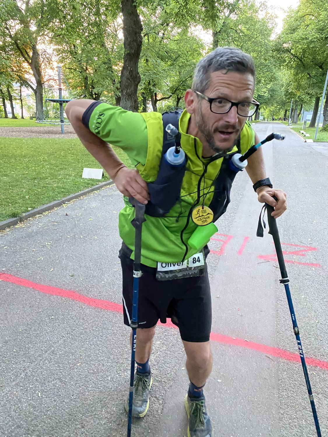 Der Sieger benötigte „nur“ 12:45 Std. Der letzte Finisher erreichte um 2:30 Uhr in der Nacht, also nach 22:30 Std. das Ziel. 20 Prozent der Starter/innen haben das Ziel nicht erreicht.