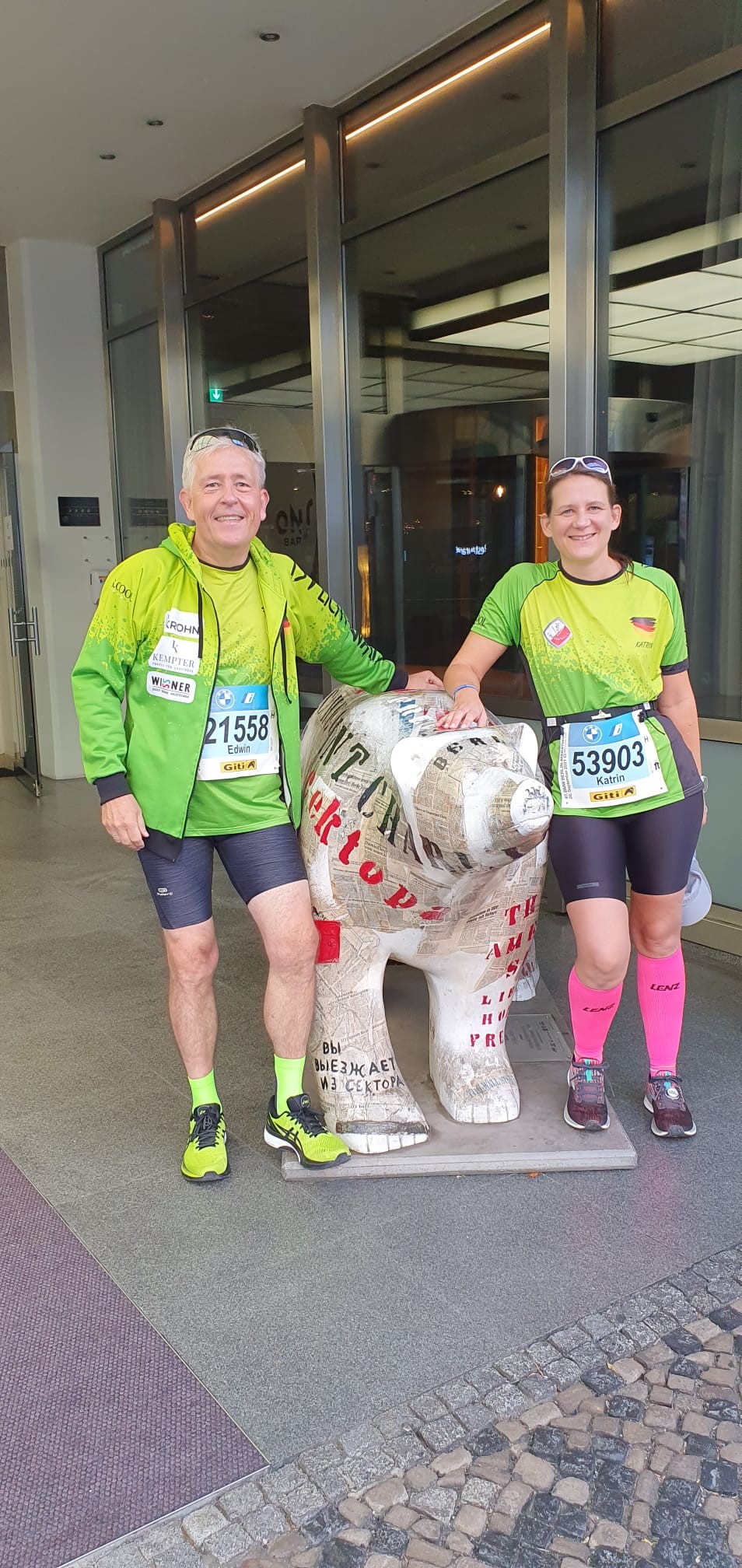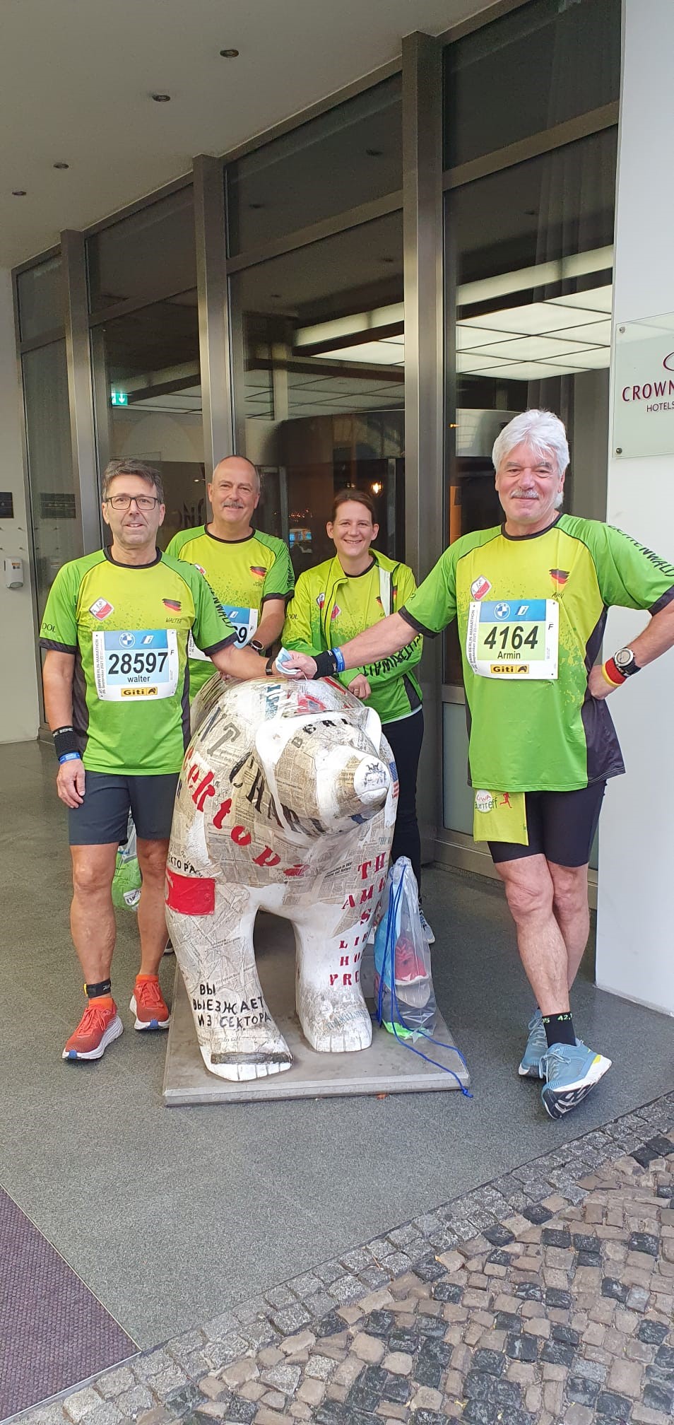 Berlin, Berlin wir fahren nach Berlin. Nach dieser Losung begaben sich auch in diesem Jahr die Läufer*innen des LIWA Lauftreffs auf den Weg zum größten Marathon Deutschlands. Für die einen war es Routine, Armin Storz und Rolf Roos z.B. reisten zu ihrem 14 Start in Berlin an und für so manchen/e anderen/e war dies der Einstieg in den Marathon- Circus, wie für Katrin Güntzschel und Vladimir Zaplava die ihren ersten Marathon in Berlin angingen. Darüber hinaus hatten wir noch ein Jubilar zu vermelden, denn Walter Krohn stand vor seinem 10 Start in Berlin und wird nach seinem Finish in den Jubilee- Club des Berlin-Marathon aufgenommen. Dann waren noch Bernhard Bucher, Daniel Guggenmos, Edwin Kinzler, Jörg Schneider, Marcel Rattay, Tobias Rossbach und Ciprian Bora mit am Start. Für einen Großteil der Gruppe ging es am Samstag sehr früh los. Da der Flieger um 6:15 Uhr startete war ein frühes Aufstehen gegen 04:00 notwendig und es sollte ein langer Tag folgen. In Berlin angekommen ging es kurz zum Hotel und dann gleich weiter zur Expo um die Startnummern zu hohlen. Hier kann man das Corona- Konzept des Veranstalters loben, denn alle Wartezeiten bezüglich der 3 G Kontrolle lagen in einem erträglichen Rahmen. Alles in allem war sowieso alles etwas entspannter, da nicht wie im Jahr 2019 insgesamt 47.000 Läufer*innen, sondern nur 25.000 für den Start zugelassen waren. Nach dem Prozedere „Startnummer“ ging es zurück ins Hotel um gleich anschließend zum Abendessen aufzubrechen. Standesgemäß ging es zu einem Italiener um den Kohlenhydratspeicher auch kräftig zu füllen. Dann beschlossen wir den Abend noch mit einem guten Glas Rotwein mit dem Gedanken auf den 42,195 Kilometern die uns morgen bevor standen. Was man noch erwähnen sollte, die Blicke waren immer auf die Wetter- App gerichtet, denn die Wetterfrösche sagten einen sehr warmen Lauf- Tag mit bis zu 25 Grad voraus. Diese 25 Grad kommen einem in den Häuserschluchten von Berlin wir 30 Grad vor und das haben die Läufer*innen nicht so gerne. Aber das vorweggenommen, es wurde genauso wie angesagt. Am Sonntag in der Früh setzten wir uns in Richtung Startbereich in Bewegung. Ein 15 min Fußmarsch zum Bahnhof Zoo und eine anschließende kurze S-Bahnfahrt bis zum Berliner Hauptbahnhof hob langsam die Stimmung an, da mit uns tausende andere gleichgesinnte mit unterwegs waren. Nach der Kontrolle im Eingangsbereich auf der Reichstagswiese stand die Abgabe des Kleiderbeutels an und der lange Weg zum jeweiligen Startblock. Die Rollstuhlfahrer und Handbiker waren schon gestartet, sodass wir noch den Start der Spitzengruppe auf den großen Bildschirmen die entlang des Startfelds aufgebaut waren, verfolgen konnten. Pünktlich um 9:35 Uhr ging es auch für unseren Startblock los, es ging auf die 42,195 Kilometer Stadtrundreise. Vorbei an der Siegessäule ging es 2,5 km geradeaus bis wir an der Technischen Universität rechts abbogen und den km 3 erreichten. Weiter ging es über die Spree bei km 3, den kleinen Tiergarten km 5, vorbei am Regierungsviertel bei km7, Friedrichstadtpalast, Alexanderplatz km 11,5, Stralauer Vorstadt, Strausberger Platz Luisenstadt, Moritzplatz, Kotbusser Tor Hermannplatz, in die Yorckstrasse wo wir den km 21,1 überliefen und somit die Hälfte hinter uns hatten. Da es nunmehr langsam der Mittagszeit entgegen ging kletterten auch die Temperaturen nunmehr schon über die 20 Gradmarke. Für uns ging es weiter über die Goebenstrasse bei km 22, zum Wartburgplatz km 23,8, vorbei am Rathaus Friedenau und später in die Rheinbabenallee, wo wir den km 30 passierten. Danach ging es bis km 33 die Hohenzollerndammstraße entlang bis wir kurz vor dem km 35 auf den Kurfürstendamm eingebogen sind. Über den Kudamm ging es am Breitschidplatz vorbei über einen leichten Anstieg kurz vor dem DB-Hochhaus bei km 38 zu der wohl gefühlt längsten gerade der Welt. Jeder wusste das nach dem DB-Hochhaus und der danach folgenden langen Geraden Streckenteil die Anstrengung bald ein Ende hat. Nach dem km 40 geht es noch in zwei 90 Grad Kurven auf die Straße des 17 Juni. Hier tat sich der Blick auf das Brandenburger Tor auf, das ganz klein am Horizont erscheint. Jetzt heißt es für alle, egal ob man schnell oder langsam unterwegs war, die letzten Kräfte zu mobilisieren, denn durch dieses Tor möchten alle laufen, dass ist die Belohnung für die Schinderei der letzten 41 Kilometer. Nach jedem Schritt wurde das Mystische Tor größer und irgendwann lief man hindurch mit einem Gänsehautgefühl. Ab diesem Zeitpunkt tragen einen die Füße wie auf Wolken ins Ziel, so auch die LIWA Läufer*innen. Alle kamen Gesund aber durch die Hitze abgekämpft ins Ziel, alle hatten ihren Traum wahrgemacht. Rolf Roos und Armin Storz zum 14 Mal. Glückwunsch an Walter Krohn zu seinem 10 Berlinmarathon und an Katrin Güntzschel sowie Vladimir Zaplava zu ihrem Marathoneinstand. Für uns stand nunmehr noch ein schöner gemeinsamer Abschlussabend in Berlin auf dem Programm und natürlich für die Katrin eine Maß Bier im Weihenstephan, als letzte Feuertaufe vor der Aufnahme zu den Berlin- Marathonis. In diesem Sinne freuen wir uns auf den 48. BMW Berlin-Marathon im Jahr 2022 mit hoffentlich vielen grünen LIWA Lauftreff- Shirts.