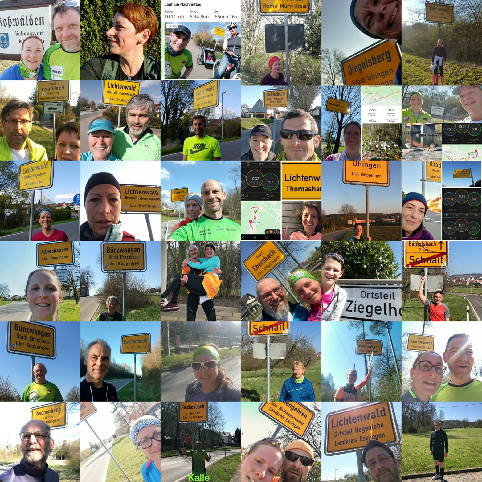 Die Aufgabenstellung lautetet: Wer sind wir und wo kommen wir her? Jeder sollte ein Foto mit dem Ortschild seines Wohnortes posten, natürlich aufgenommen während einer Laufeinheit.