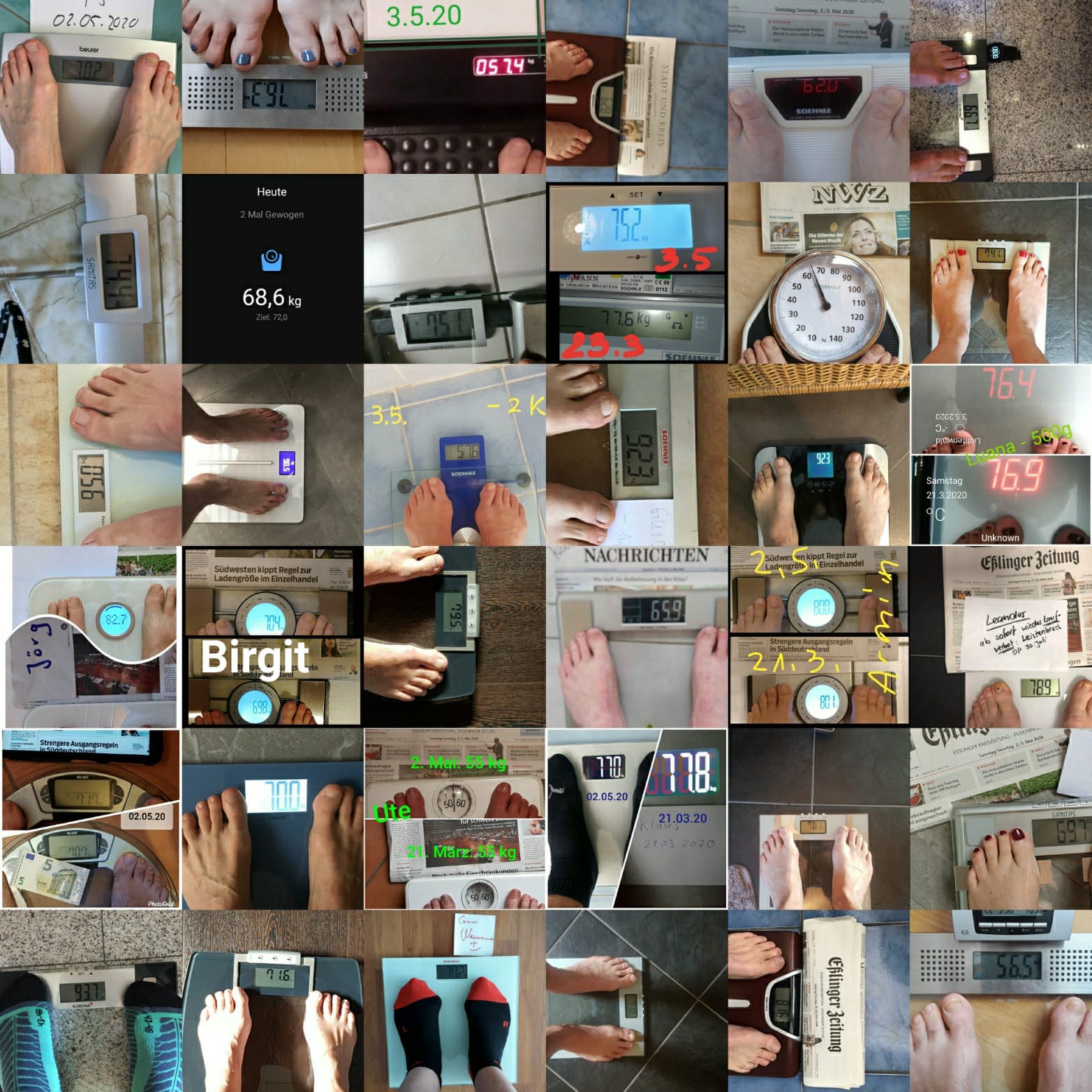 Die erste Challenge war der sogenannte LIWA-LaufTreff interne Gewichtskontrollen-Marathon. Dabei sollten sich die Mitglieder des Lauftreffs am ersten Wochenende nach dem allgemeinen Shutdown auf die Waage stellen und dann genau nach 6 Wochen, bzw. 42 Tagen (da ein Marathon 42 km entspricht) ein zweites Mal wiegen. Je nachdem in welche Richtung und wie weit sich dann die Nadel ausgerichtet hat, wurden „Strafzahlungen“ in das Team-Kässchen fällig. Und zwar 10 Euro für jedes Kilo das zugenommen wurde und 5 Euro für jedes abgenommene Kilo.
