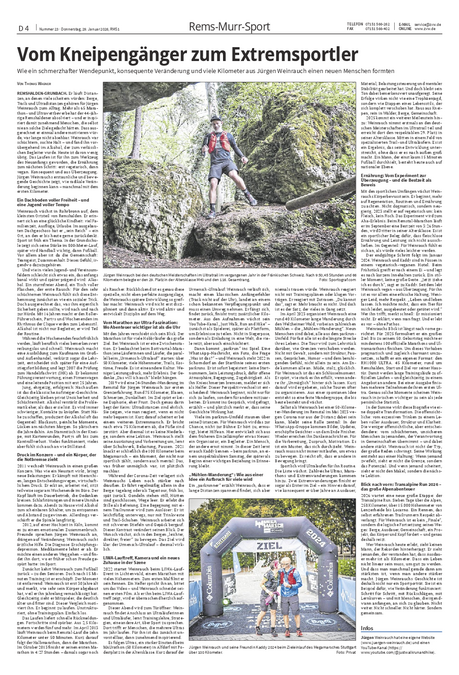 Ein Artikel aus dem Zeitungsverlag Waiblingen (ZVW) vom 29. Januar 2026 über unser LIWA-Lauftreff Mitglied Jürgen Weinrauch