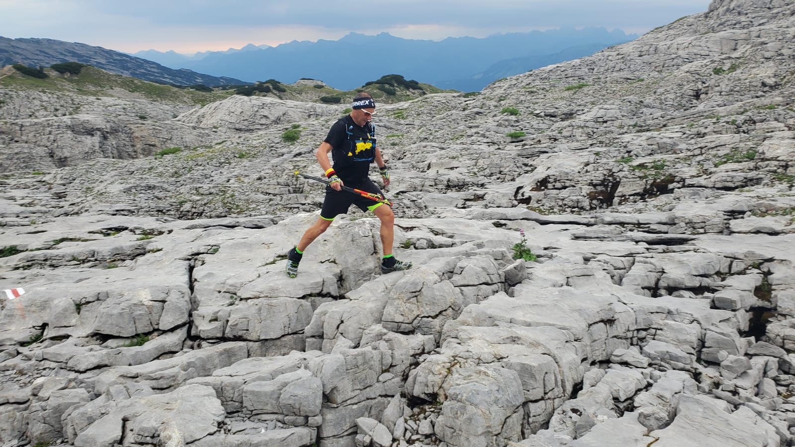 Bereits um 6 Uhr morgens machte sich Kalle mit weiteren 150 Ultraläufern auf den Weg zu einem extrem spannenden Trail-Abenteuer rund um das Kleinwalsertal. Was folgte war ein Tag voller visueller Eindrücke und Emotionen auf einer spektakulären Strecke, gesäumt von alpinen Bergpfaden die permanent die gesamte Ausdauer, Kraft und Aufmerksamkeit fordern. Die wohl unter Wanderern bekanntesten Streckenabschnitte und Wegpunkte waren das sogenannten Gottesacker-Plateau, Hoher Ifen, Walmendinger Horn, Ochsenhofer Scharte, Grünhorn, Widderstein Hütte, Mindelheimer Hütte und zum Schluss noch der nicht enden wollende Aufstieg zum Fiderepass. Es war alles dabei, von idyllischen Bächen und Wasserfällen, über urwaldhafte Vegetationen, bizarre Steinlandschaften, mit Stahlseilen gesicherten Kletterpassagen, tiefe Wasserrillen, extrem steile, verwurzelte und mit losem Geröll gesäumte Auf- und Abstieg und schmale Bergrückenpfade auf welchem man den Blick lieber nicht zur steil abfallenden Seite wenden wollte. Ist das überhaupt laufbar und kann man das in solch einem Gelände überhaupt noch „Running“ nennen? Natürlich wird hier nicht alles durchgelaufen. Der durchschnittliche Trailrunner benötigt jedoch maximal ein Drittel der Zeit, die an den Wegweisern als Laufzeiten für Wanderer angegeben sind. Und nach einem kräftezehrenden Aufstieg gönnt man sich nur zu gerne eine kurze Verschnaufpause und genießt dabei die atemberaubende Aussicht auf die Panoramen der Bergwelt.