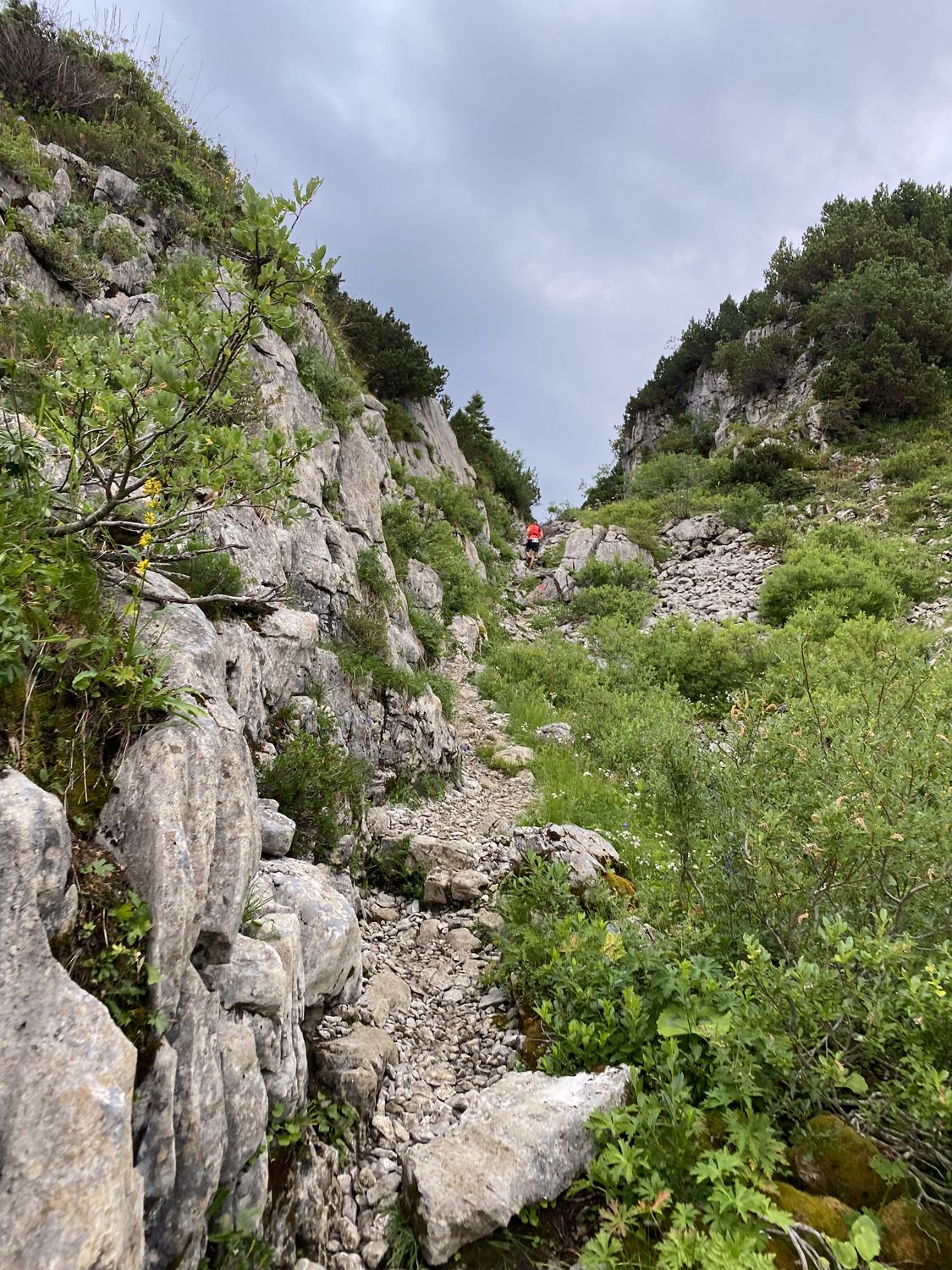 Ab hier waren es noch 10km, eigentlich bergab. Eigentlich! Wenn dir ein einheimischer Streckenposten zuruft „hey, es ist nicht mehr weit, gleich hast du es geschafft, es geht nur noch auf einfachen Trails leicht wellig bergab“ dann heißt das übersetzt: „hey, ich hoffe du hast noch ausreichend Kraft und Körner um die nächsten 1,5 Stunden auf dem extrem verwilderten Downhill, gespickt mit noch ein paar knackigen Steigungen zu überleben. Ich wünsche dir alles Gute!“
