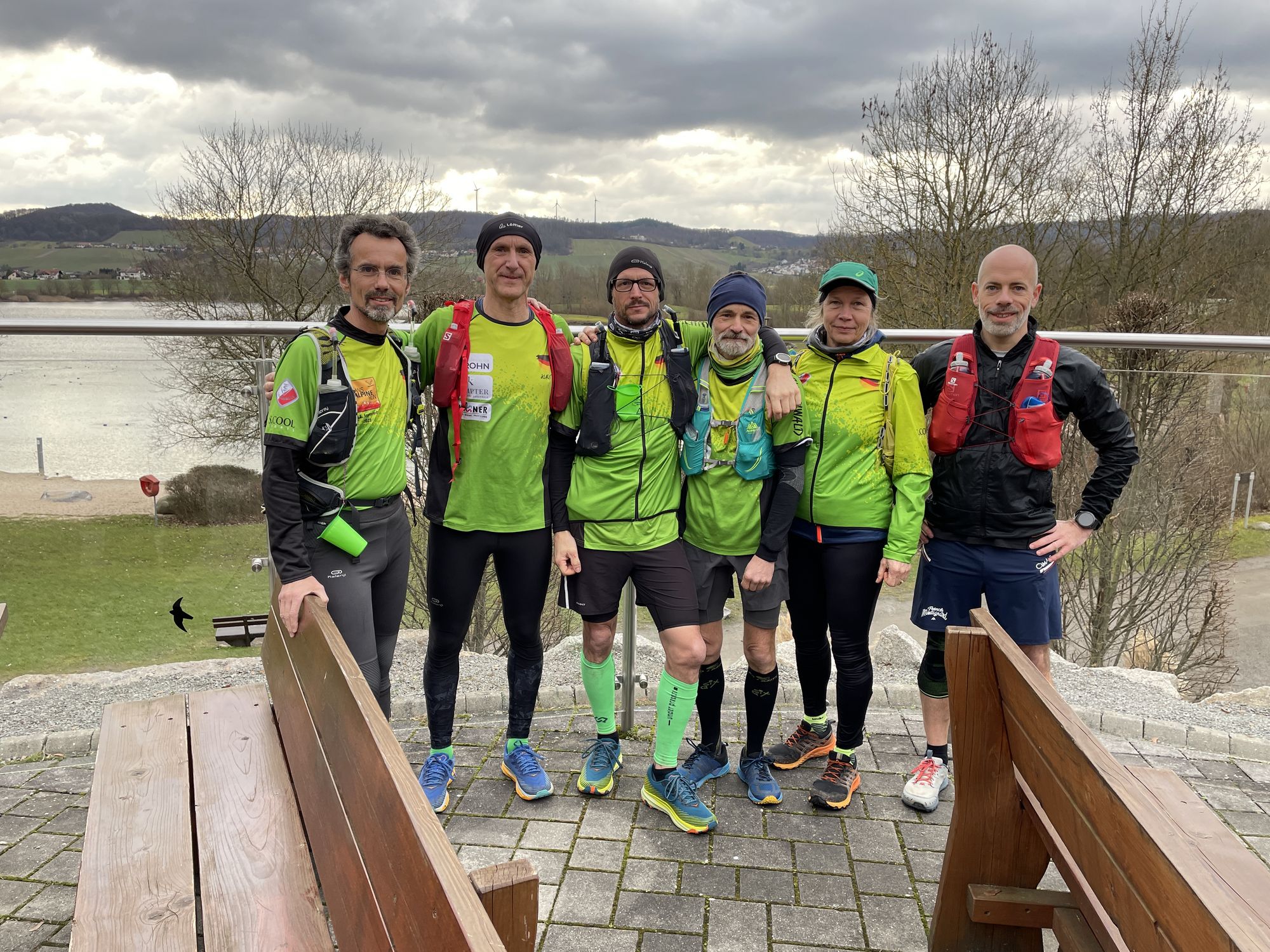 Die LIWA-Truppe meisterte den Kurs in zwei Gruppen. Die Vorhut um Oli, Klaus, Wolfgang und Jürgen überquerte die Ziellinie gemeinsam nach 6:19 h und landete im Mittelfeld des Klassements. Johanna und Bernd durften den kleinen aber sehr charmanten Lauf noch exakt eine Stunde länger genießen und kamen, gemeinsam in einer netten Fünfergruppe, nach 7:19 h zu ihrem verdienten Finisher-Bier. Die gesamte Ergebnisliste ist auf der Seite der DUV einsehbar (https://statistik.d-u-v.org/getresultevent.php?event=93979)