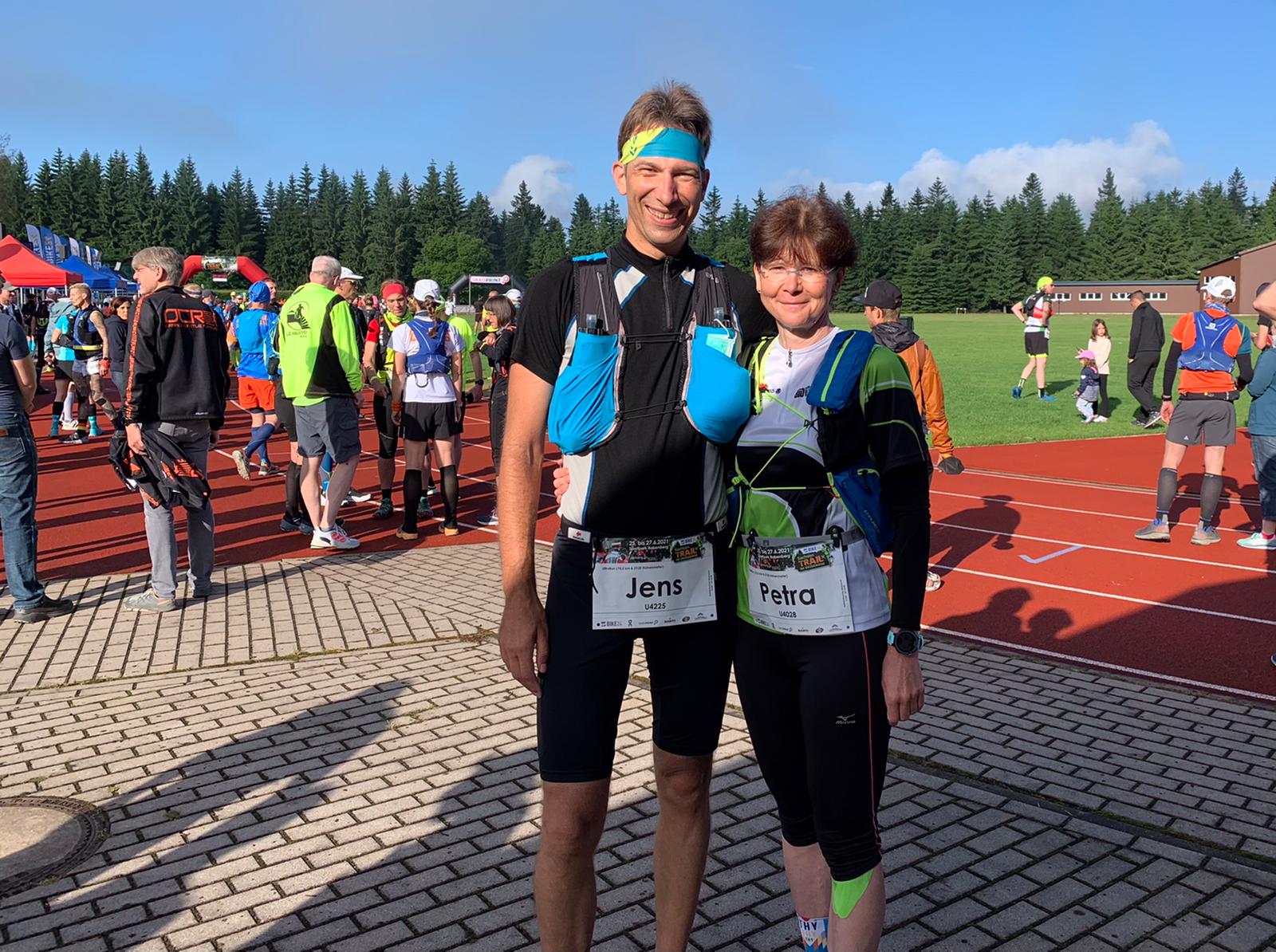 Etwas weiter und auch etwas Höher unterwegs waren Petra und Jens Jaeger beim SachsenTrail durchs Erzgebirge. Dort ging es für die beiden über 74,5 km und 2.120hm. Das Paar meisterte die Strecke gemeinsam in 9:53:34 Stunden. Für Petra bedeutete das Gesamtplatz 9 bei den Damen und den Sieg in der AK W50 und für Jens Platz 91 in der Gesamtwertung und Rang 15 in der AK M45.