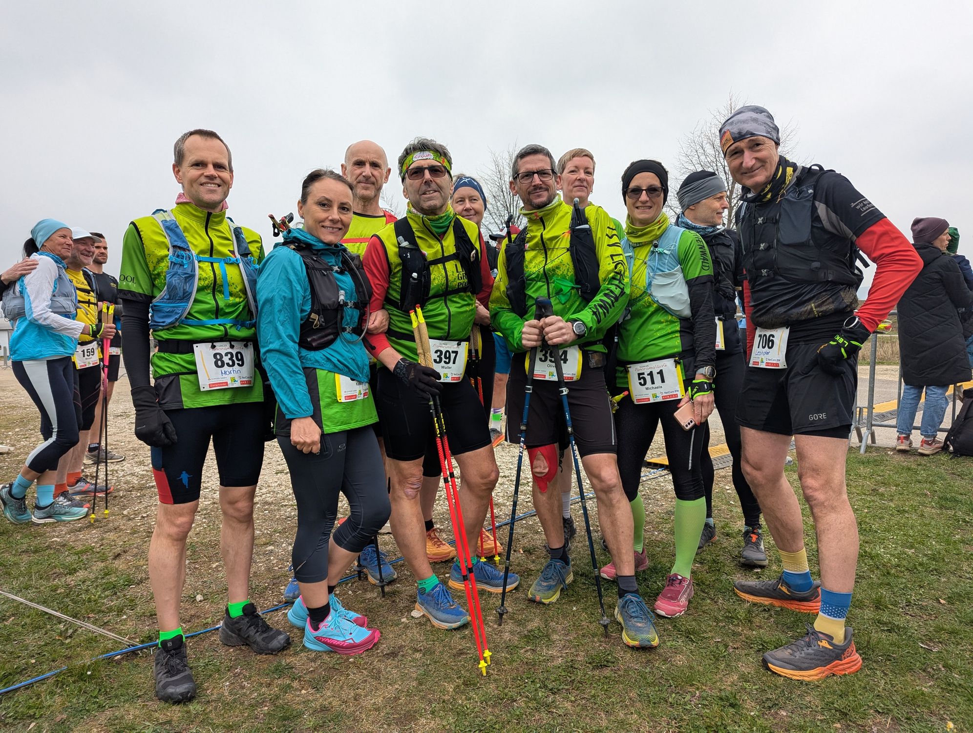Die Essinger Panoramaläufe gibt es schon seit vielen Jahren. Am 23 km langem Drei Berge Lauf haben die Läufer vom TSV Lichtenwald in den letzten Jahren immer mal wieder teilgenommen. Dieses Jahr jedoch, wurde ein neuer Lauf mit angeboten, der NetCom BW Limes Trailrun. Dieser sollte mit 30 km und rund 1.100 hm auch länger und anspruchsvoller sein. Allein das verheißungsvolle Wort Trailrun im Namen ließ daher auch gleich ganze 9 Läuferinnen und Läufer aufhorchen. So waren dann am 29.03.2025 pünktlich um 11 Uhr Christin, Conny, Katalin, Michaela, Oliver, Walter, Leander, Klaus und Martin am Start. Natürlich hat der TSV noch viele weitere Traillauffans. Vier davon verbrachten aber schon das gesamte Wochenende in der Pfalz beim 3 Etappen Bergland-Trail. Nach den Läufern des LAC Essingen, der Trailschmiede Ostalb und der Halbtraum-Fabrik, stellten die Lichtenwalder damit auch den viertgrößten Verein. Allein durch diese vier Vereine wurde die Hälfte der nur rund 100 Teilnehmer gebildet. Dementsprechend ruhig und gelassen ging es daher auch am Start und auf der gesamten Strecke zu; aber nur rein platztechnisch gesprochen. Wettkampftechnisch waren die meisten Lichtenwalder gut drauf und liefen für sich selber erstaunlich gute Zeiten. So räumten sie auch schließlich in den unterschiedlichsten Altersklassen einen ersten, zwei zweite und einen dritten Platz ab. Der Traillauf selber bot nahezu alle Beläge. Ca. ein Wegdrittel war geschottert, ein Drittel naturbelassen und hatte damit auch größtenteils den Namen Trail verdient, aber der Anteil von fast 6 km Asphalt war dann schon reichlich viel für einen Traillauf. Um die rund 1.100 hm auf der Ostalb zw. Essingen und Unterkochen zu erhalten, musste natürlich auch ordentlich hoch und runter gelaufen werden. Die härteste Nuss war sicherlich der 1,9 km lange Anstieg von Oberkochen die Essinger Steige hoch. Fast 200 hm schnurgeradeaus berghoch. Das ging ordentlich in die Beine und war von den meisten nur gehend zu bewältigen. Die Stecke an sich war bestens beschildert mit Pfeilen und Flatterband. Und auch die Zielverpflegung war gut. Einziger Wermutstropfen vielleicht war die „Medaille“ im Ziel, die nur aus einem kleinen eingepacktem Stück Kuchen in Medailliengröße war, während die Läufer aller anderen und kürzeren Wettbewerbe eine echte bekommen hatten. Dies war bestimmt nicht das letzte Mal, dass sich ein paar Lichtenwalder nach Essingen verirrt hatten.