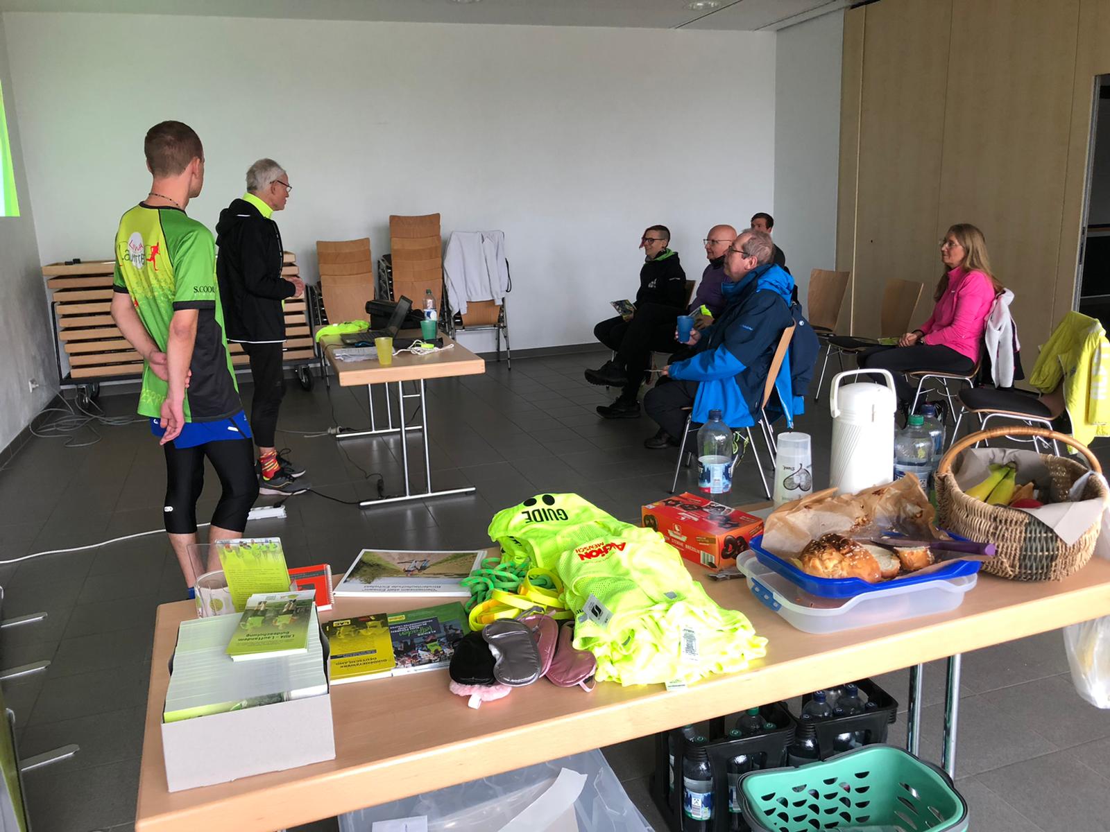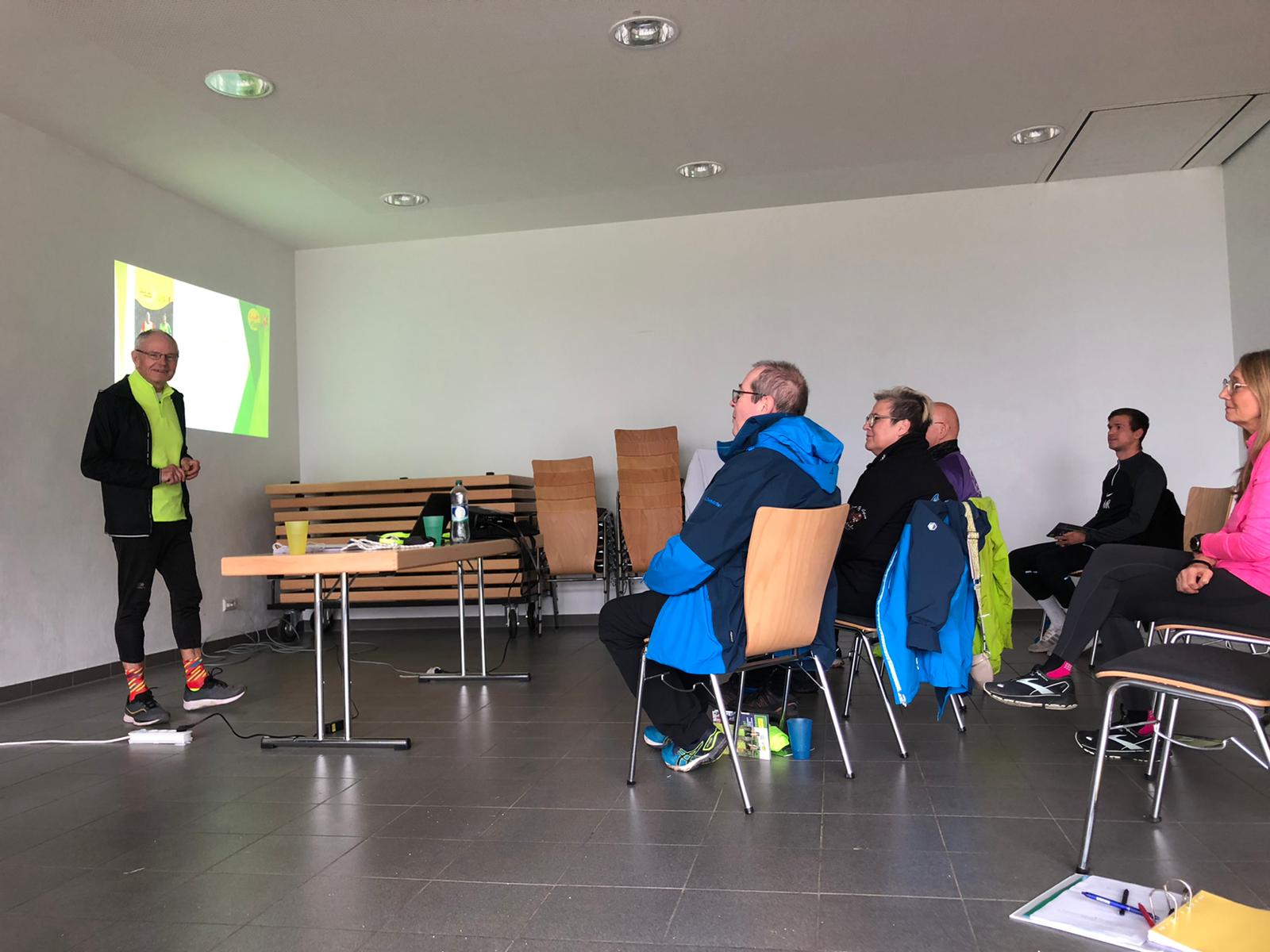 Trotz des kalten und regnerischen Wetters fanden sich pünktlich um 11:00 Uhr alle 6 Teilnehmer (hauptsächlich vom parkrun Schorndorf, den Ofi's- Läufern und Marcel vom TSV Lichtenwald) zum theoretischen Teil der Schulung ein. Dieser wurde erstmals gemeinsam von Gunter und Pierre gehalten.
