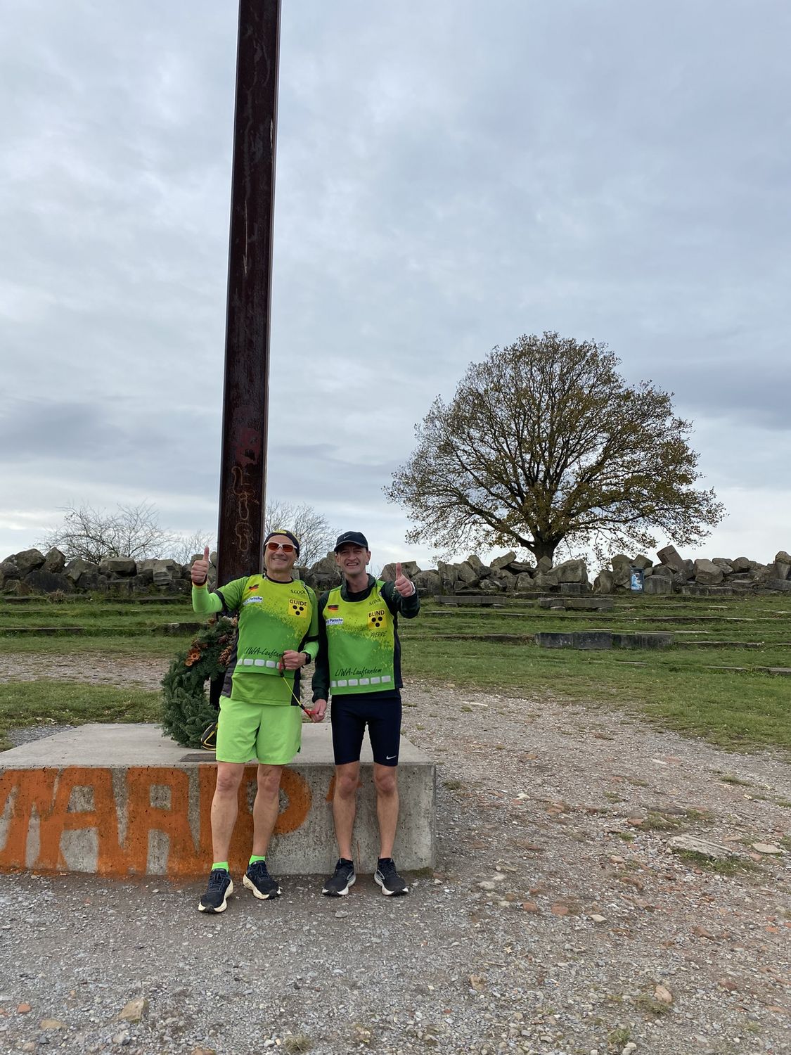 Auf dem ersten Drittel bis hoch auf den Birkenkopf lief alles ohne größere Probleme. Das Tempo war so gewählt, dass man gegen Ende des Laufs noch ausreichend Körner haben sollte. Was gelaufen werden konnte wurde gelaufen, wo gehen die sicherere Option war, wurde gegangen. Nach ca. 35 Kilometern deutete sich bei Pierre ein erster Wadenkrampf an. Leider etwas früh als Folge der bisherigen Belastung, aber vermutlich auch aus der insgesamt körperlich höheren Anspannung. Natürlich wurden gleich Maßnahmen eingeleitet, um den Krampf zu bekämpfen. Doch wenn man anfängt auf der einen Seite zu entlasten, holt man sich naturgemäß auf der anderen Seite ein zusätzliches Problem ein. Und so war es dann auch bei Pierre. Gehphasen und notwendige Pausen wurden länger. Nach der Marathondistanz hatte man auch schon gut 1.000 Höhenmeter auf der Uhr. Es waren ja noch ein paar Kilometer zu Laufen und als Highlight der Strecke die Runde um die Grabkapelle herum zu meistern. Und was hoch geht, muss auch wieder nach unten gelaufen werden. Das mochte Pierre`s Muskulatur mittlerweile gar nicht mehr mitmachen. Zu ungewohnt und letztlich vielleicht auch zu wenig trainiert. Und dennoch war Aufgeben für Pierre zu keinem Zeitpunkt eine Option. Also ging es im Run & Walk Modus weiter, wobei sich die Anteile deutlich in Richtung Walk verschoben. Kurz vor Einbruch der Dunkelheit erklommen die beiden den Württemberg. Die Runde um die Kapelle war ein Muss.