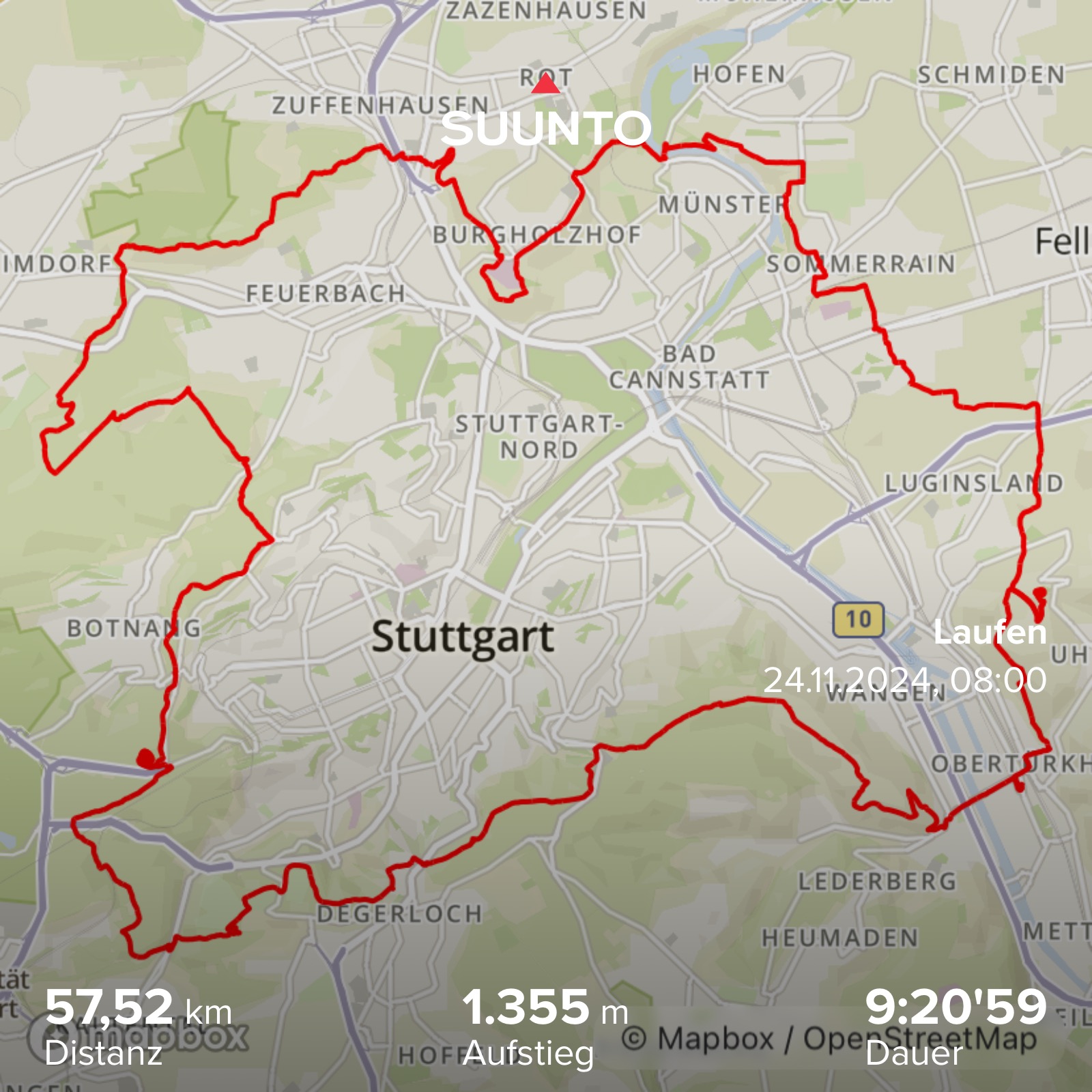 Die Rössle Höhenwanderweg führt vom S-Bahnhof in Obertürkheim im Uhrzeigersinn über Hedelfingen, hoch zum Frauenkopf bis zum Fernsehturm nach Degerloch . Weiter geht’s durch das Kaltental in den Dachswald hinauf zum Birkenkopf, besser bekannt als Monte Scherbelino. Durch den Krähenwald läuft man hinunter ins Feuerbacher Tal bis nach Weilimdorf und Zuffenhausen. Über die Weinberge kommt man am Robert-Bosch-Krankenhaus vorbei und etwas später erreicht man den Neckar beim Max-Eyth-See. Etwas wellig geht es dann über Bad-Cannstatt und Luginsland bis zum finalen, aber nochmal sehr kräftezehrenden Aufstieg hoch zur Grabkapelle auf den Württemberg. Dort einmal um die Kapelle herum und wieder runter auf die letzten Kilometer, durch die Weinberge zurück zum Ausgangspunkt in Obertürkheim.