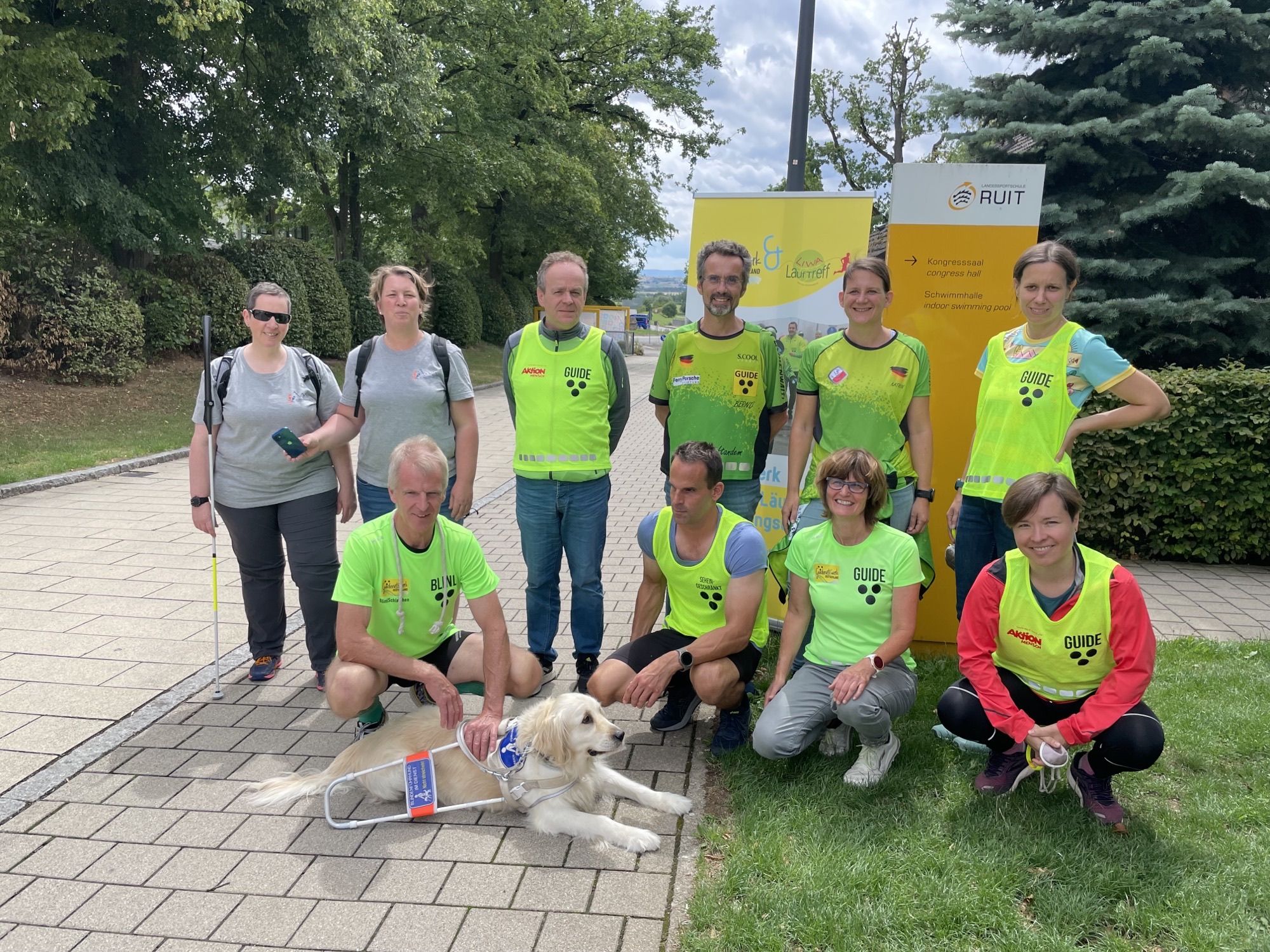 Vom LiWa-Lauftreff mit dabei waren die beiden ausgebildeten Tandem-Guides Kathrin Güntschel und Bernd Göhner. Zusammen mit den Gründern des Guide-Netzwerks Deutschland, Juliana und Hans-Reinhard, konnten an diesem Tag gleich 2 Gruppen von interessierten Läuferinnen und Läufern als Guides geschult werden. Spaß gemacht hat vor allem auch der praktische Teil mit so ambitionierten blinden Läufern wie Hans-Reinhard und Martin.