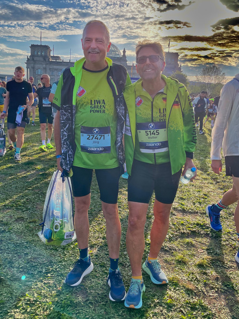 Seit Jahrzehnten ist der Liwa-Lauftreff, beim größten Marathon Deutschlands in Berlin, vertreten. Diesmal waren 13 Starter von uns unter den rund 54.000 Läufern dabei. Nach teilweise spannenden Anreisen – spannend, weil die Bahn mal wieder Personal- und Streckenausfälle hatte, durfte man dieses Jahr seine Startunterlagen auf dem Messegelände abholen. Seither musste man zum alten Flughafen Tempelhof fahren; das Messegelände ist jedoch leichter zu erreichen und auch besser geeignet. Erst nach Erhalt eines entsprechenden Armbändchens war man dann offizieller Teilnehmer und durfte abgesperrte Bereiche betreten. Nur damit war auch am Lauftag der Zugang zum Rennen überhaupt möglich. Der/die eine oder andere bummelte nach Erhalt der Startnummer gemütlich über die Messe, manche kauften sich dann auch noch etwas Equipment, schließlich hat man ja nicht jeden Tag diese Möglichkeit. In kleineren Grüppchen genoss der Liwa-Trupp dann den Abend, auch um den Kohlenhydratspeicher kräftig zu füllen. Der Lauftag selbst begann wie immer auf der großen Wiese vor dem Reichstag. Dort konnte man seinen Kleidersack, für Wechselkleidung nach dem Lauf, abgeben und wurde dann auf den langen Weg zum jeweiligen Startblock geleitet. Die extrem warmen Temperaturen verhießen nichts Gutes, neue Rekordzeiten waren nahezu ausgeschlossen. Vernünftig war, wer sein Tempo drosselte, viel trank und auch mal Gehpausen einlegte. Dank des sonnigen Wetters war die Stimmung an der Strecke unbeschreiblich und wesentlich besser als im Vorjahr, beim (50.) Jubiläumslauf. Viele Freiwillige halfen bei der Wasser- und Getränkeversorgung, man schüttete fast mehr Wasser über den Kopf als in ihn hinein. Es war ein einzigartiges Gefühl mit soviel Gleichgesinnten auf den Straßen von Berlin unterwegs gewesen zu sein. Jeder/e einzelne kann stolz sein, die 42,195 km bewältigt zu haben, es sind alle Sieger im wahrsten Sinne, was dann am Abend gemeinsam ordentlich gefeiert wurde, es war mal wieder ein unvergessliches Wochenende und ja, es wurde bereits über 2026 nachgedacht. Auch nächstes Jahr wird die LiWa-Laufgruppe wieder beim Berlin-Marathon vertreten sein, mal sehen, wie groß dann die Truppe sein wird.