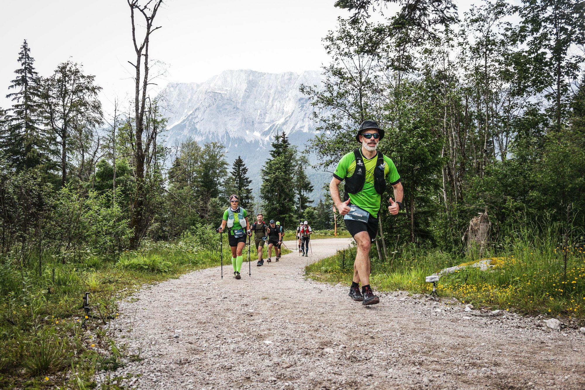 Unter den Ultradistanzen stellte der Mittenwald-Trail mit 853 Enthusiasten an diesem Wochenende das mit Abstand größte Teilnehmerfeld. Geduld und ruhige Nerven waren daher am Start sowie am ersten schmalen Anstieg gefragt. Satte 25 Minuten verstrichen auf den ersten zwei Kilometer, ehe sich das Gewusel langsam auseinanderzog. Nach dem ersten steilen Streckenabschnitt führte die Route durch die Laintalklamm und vorbei an den wunderschönen Gebirgsseen, dem Lautersee und Ferchensee bis zum ersten Verpflegungspunkt am malerischen Schloß Elmau. Über den Wamberger Rücken und entlang eines herrlichen Panoramaweges folgte ein rasanter Abstieg zur Partnachklamm, bis die Streckenführung ins Bodenlainetal mündete.