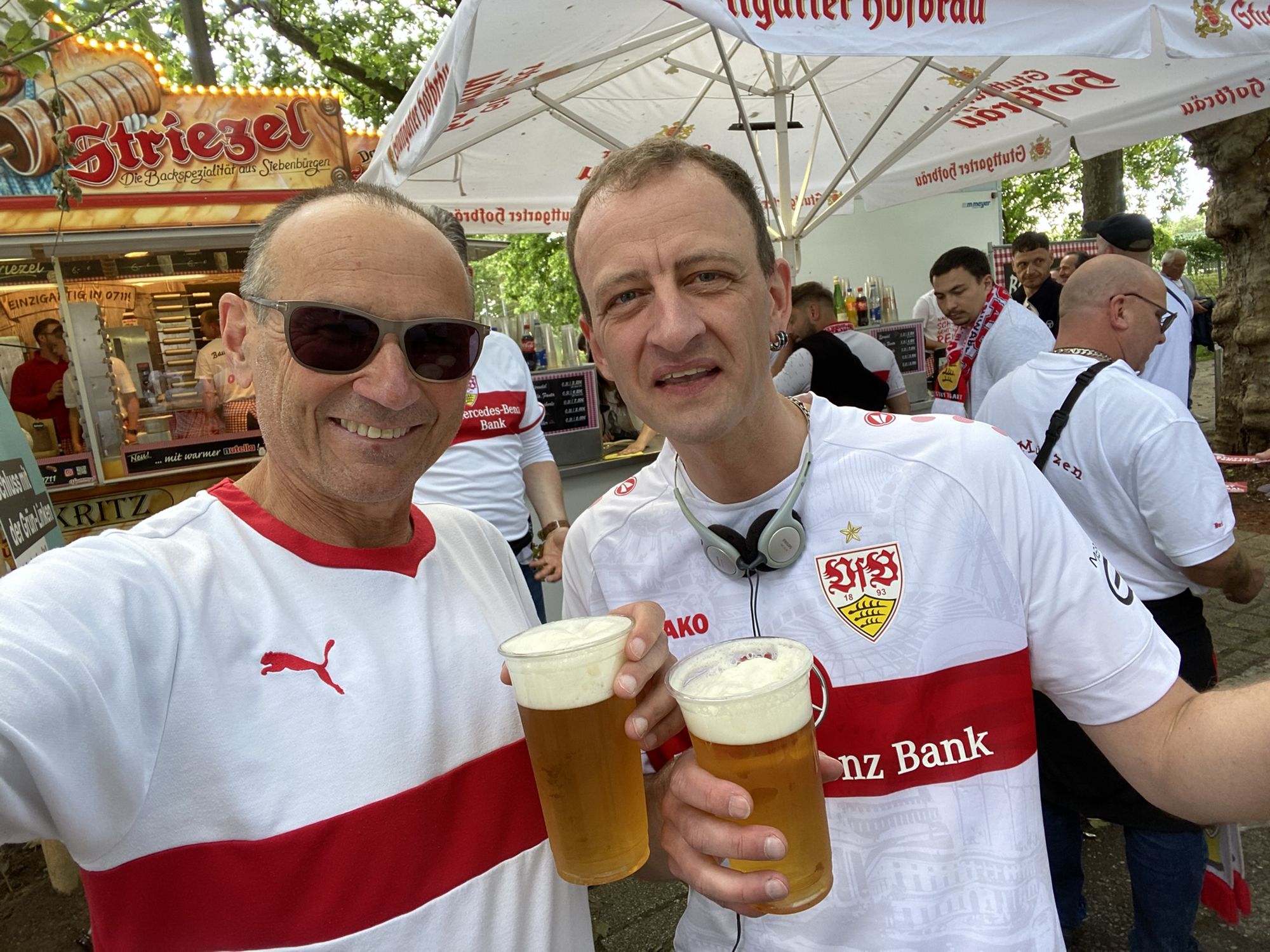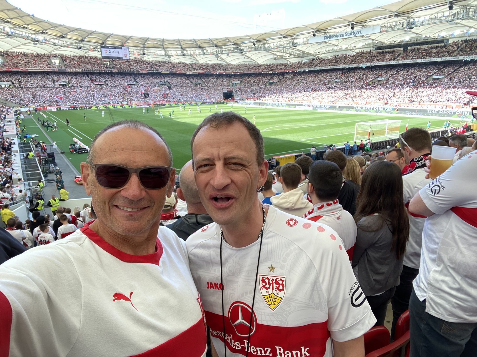 Den Tag fasste Pierre mit folgenden Worten zusammen: „Es war ein unglaublicher Tag. Ich war schon am Vortag etwas nervös wegen der anspruchsvollen Strecke und als es am Morgen auch noch entgegen der Wettervorhersage geregnet hatte, sah ich das schon als ein schlechtes Vorzeichen. Aber pünktlich zum Start hörte der Regen auf und auch Dank einiger Helfer an der Strecke kamen wir planmäßig am Stadion an. Es war ein unbeschreibliches Gefühl zwischen Erleichterung, das Ziel erreicht zu haben, und der Vorfreude auf das Spiel, da wir uns ab dem Cannstatter Bahnhof durch die ersten Fan-Massen schlängeln mussten. Für den zweiten Teil des perfekten Tages hat dann die Mannschaft gesorgt. Vielen Dank an dieser Stelle an alle, die uns bei der Durchführung dieser Aktion unterstützt haben!”