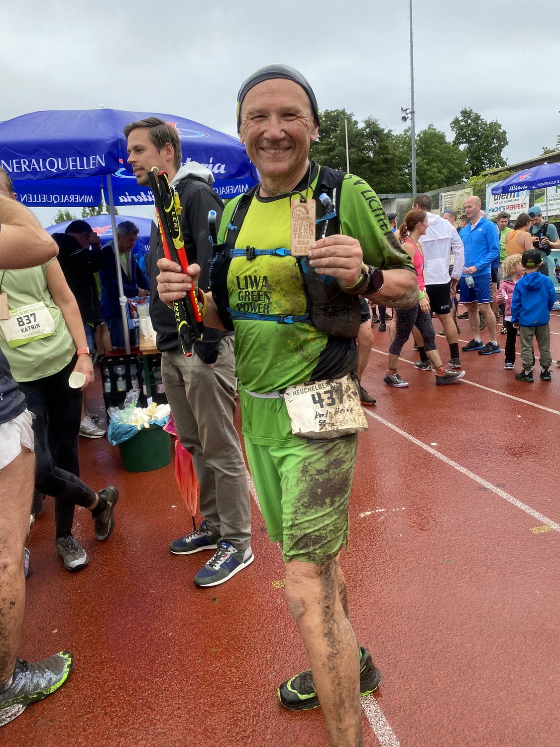 Auf dem Fünfziger war Kalle nach 5:28:46 Std. als 42. und Leander nach 7:12:18 Std. als 85. Läufer im Ziel. Völlig durchnässt, gezeichnet von Matsch und Schlamm aber mit einem breiten Grinsen im Gesicht, ließ man sich die Finisher Medaille um den Hals hängen.