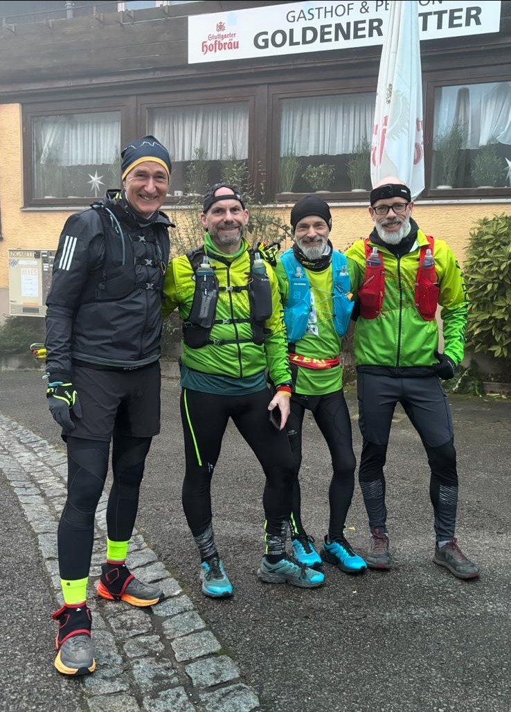Am 13.12.2025 war es soweit: Das LIWA-Quartett – Wolfgang Hohlbauch, Gunther Krapf, Jürgen Weinrauch und Leander Schade – machte sich auf den Weg in den Schwäbischen Wald. Ziel: Vorderbüchelberg. Mission: Den vermutlich letzten Ultra-Trail des Jahres bezwingen – den Spiegelberger Räuberweglauf.