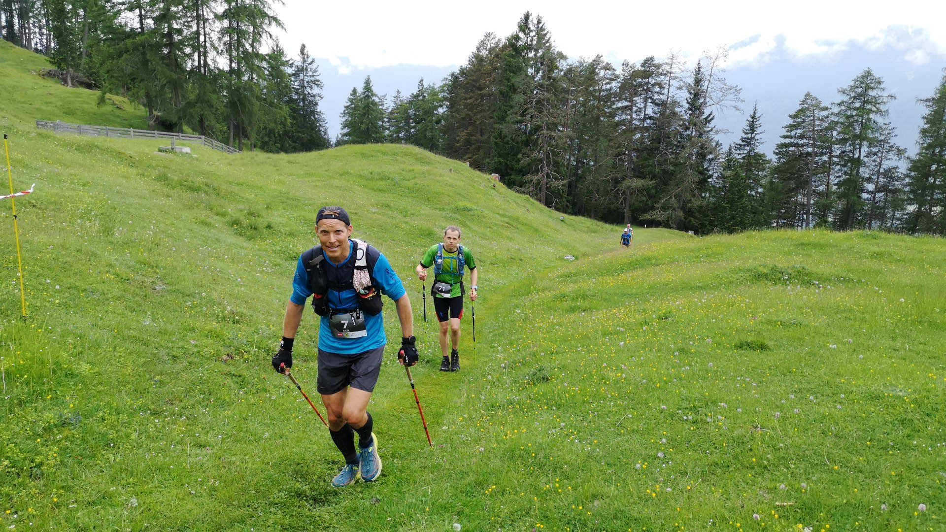 Nachdem sich Martin Dunker durch seinen Trainingspartner Axel Müller vor zwei Jahren zu seinem ersten echten (Alpen-)Traillauf hat breitschlagen lassen, wurde daraus jetzt ein jährliches Event. So stand dieses Jahr am 11.06.2023 der Tschirgant Sky Run in Imst für beide auf dem Programm. Los ging es bei rund 12 °C und bewölktem Himmel um 6:30 Uhr. Zur Auswahl standen 4 verschiedene Strecken. Wobei Axel als UTMB-Finisher natürlich gleich wieder das härteste Brett mit 54 km und rund 3.500 hm herausgesucht hatte. Da Axel noch eine Woche zuvor an einem anstrengendem Berglauf teilgenommen hatte, war Martin guter Dinge, diesmal am Berg gut mithalten zu können. Praktischerweise ging es die ersten beiden Kilometer flach auf Asphalt los, so dass man sich hier noch ein wenig einlaufen konnte. Aber danach ging es auch gleich schon steil bergan, über Karrösten immer höher bis zum höchsten Punkt der Strecke, dem Tschirgant (2.372 m), der nach insg. rund 13 km erreicht wurde. Damit waren dann bereits fast 1.500 hm absolviert. Oben am Tschirgant kam auch tatsächlich die Sonne heraus und die Sicht war einfach phänomenal. Das Spiel der schnell vorüberziehenden Wolken war so schön, man musste einfach kurz stehen bleiben um die Aussicht zu genießen und ein paar Fotos zu machen. Beim Passieren der kurzen Passage unterhalb des Tschirgants bis zum anschließenden Gratweg, überkam einen schon ein etwas mulmiges Gefühl. Es war sehr geröllig, ging z.T. steil bergab und man musste über ein kurzes Schneefeld. Aber gut, dass die Bergwacht extra hier oben an dieser Stelle war und aufpasste. Danch ging es dann entlang des Grates hinunter zur Haiminger Alm und anschließend wieder hoch zum Simmering. Diese etwa 7 km waren zwar ebenfalls technisch anspruchsvoll aber trotzdem noch gut laufbar. Nach dem Simmering ging es noch ein wenig über große, grüne Almenwiesen. Immer wieder hatte man wunderschöne Blicke nach links ins Gurgltal und nach rechts ins Inntal. Dann kam der Oberschenkelkiller. Es ging in nur 3,5 km über 900 hm am Stück in kleinen Serpentinen einen Wurzelsteig relativ steil immer bergab bis nach Nassereith. Die dortige Verpflegungsstation tat gut, denn zum einen ging es schon gleich wieder 800 hm hinauf und zum anderen war die Sonne inzwischen sehr stark geworden und man war für jeden Schatten dankbar. Nach insgesamt ca. 37 km waren die meisten Höhenmeter geschafft. Allerdings fehlten noch ein paar Kilometer bis ins Ziel. Axel und Martin liefen bis zum Erreichen der Marathondistanz die komplette Strecke über zusammen. Da sich Martin aber noch fit fühlte und auch keine großen Steigungen mehr zu erwarten waren, was ja Axels Spezialgebiet ist, verabschiedeten sie sich und Martin lief die letzten 12 km in seinem Tempo vorneweg weiter. Als letztes Highlight ging es dann wieder kurz vor Imst noch durch die tosende Rosengartenschlucht. Rund 10 Leute konnte Martin auf seinem Solostück noch überholen und kam schließlich als 26. von 67 gestarteten Teilnehmern, mit 8:53 Std. rund 25 Min. vor Axel glücklich ins Ziel. Bei diesem Lauf hatte alles gepasst. Das Wetter war top, die Beine gut erholt vom erst drei Wochen zuvor absolvierten Alptraum 100 und die Landschaft wunderschön. Das Einzige, was hätte verbessert werden können war das Iso-Angebot an den hier genannten Labstationen. Das Iso schmeckte genauso wie Wasser, nur das es gefärbt war. Dafür waren die immer angebotenen Melonen- und Kuchenstücke umso leckerer. Mal schauen, was Axel nächstes Jahr für einen Lauf ausgräbt.