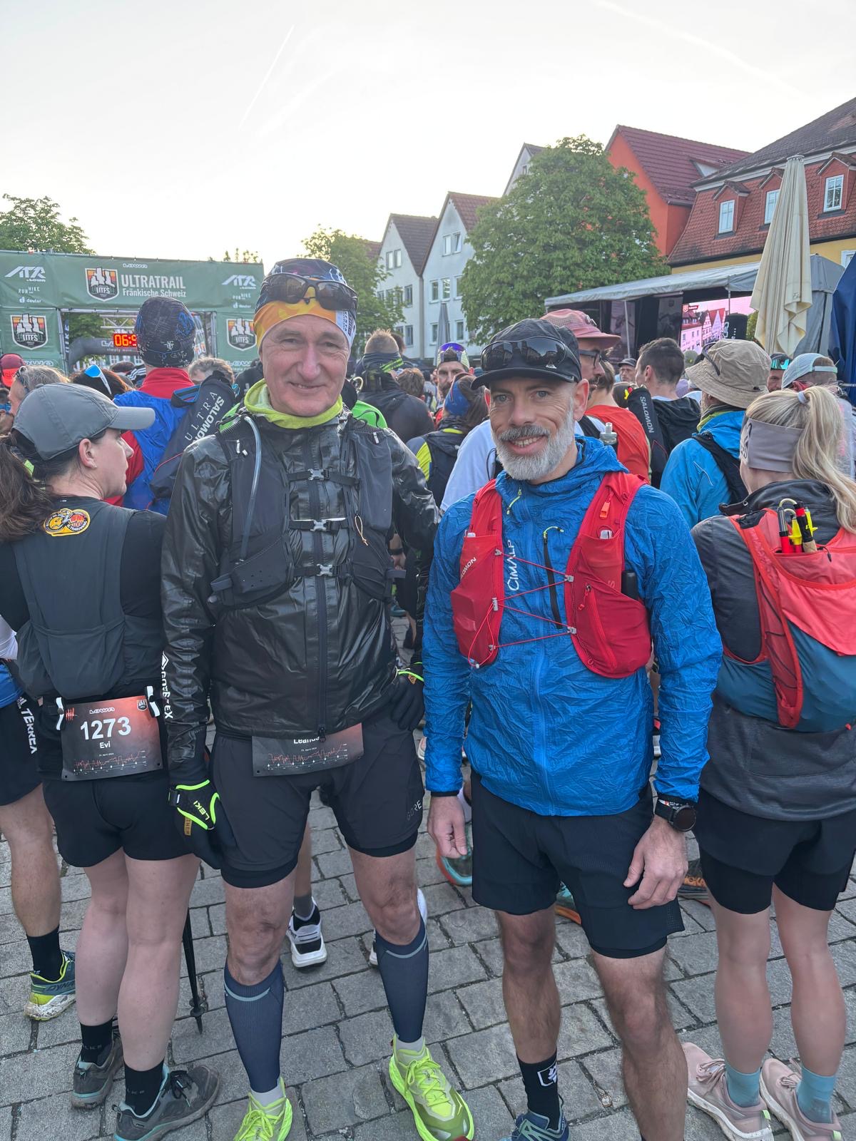 Am 25. April 2026 stand ich, Jürgen Weinrauch, zum zweiten Mal beim UTFS Ultratrail Fränkische Schweiz am Start. Für den LIWA‑Lauftreff unterwegs, reiste ich gemeinsam mit Leander Schade, ebenfalls vom LIWA‑Lauftreff, bereits am Vortag nach Ebermannstadt. Wir holten unsere Startnummern ab, genossen die entspannte Atmosphäre und ließen uns die traditionelle Nudelparty nicht entgehen. Für Leander war es der erste Start beim UTFS, entsprechend groß war seine Spannung – und meine Vorfreude, die Strecke erneut unter die Füße zu nehmen.