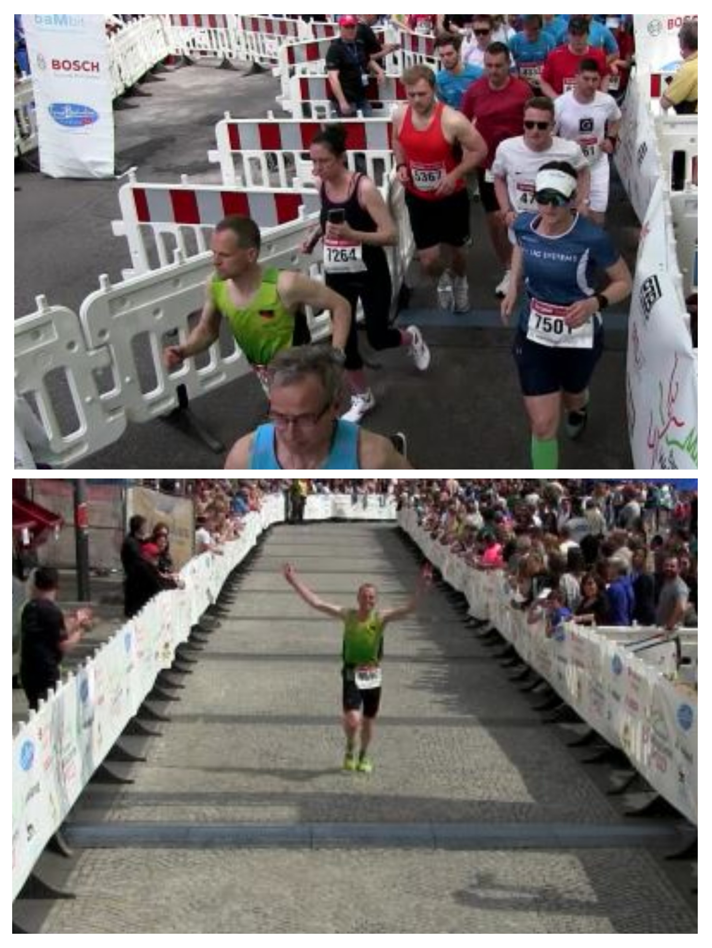 Am Sonntag dem 07.05.2023 fand in Bamberg der 10. Weltkulturerbelauf statt. Auf sieben verschiedene Läufe verteilt, begaben sich rund 12.000 Läuferinnen und Läufer an den Start. Mit zudem rund 30.000 Zuschauern, war halb Bamberg von mittags bis abends unermüdlich anfeuernd an der Strecke mit dabei. Eine so tolle Stimmung und fast die gesamte Strecke entlang ständig klatschende Zuschauer findet man bei Läufen sonst nur selten. Ich hatte mich an diesem Tag für den 10,7 km langen Brose-Lauf entschieden. Dieser ging im Zickzack durch die gesamte Altstadt von Bamberg, an nahezu allen Sehenswürdigkeiten wie z.B. Dom, Altes Rathaus und Klein Venedig vorbei. Für einen schnellen Stadtlauf war der Lauf jedoch ziemlich anspruchsvoll. Zum einen ging es am Anfang über den Michaelsberg, zum anderen bestand fast die Hälfte der Strecke aus Kopfsteinpflaster. Durch die zahlreichen schmalen Gässchen, die vielen Rechts-links-Kurven und das stellenweise sehr holprige Pflaster, hatte der Stadtlauf phasenweise richtig Trailcharakter. Damit diese Strecke überhaupt die Massen von bei diesem Lauf über 3.000 Läufern stemmen kann, wurde das passieren der Startlinie so eng gestaltet, dass nur zwei Läufer nebeneinander loslaufen konnten. Obwohl ich mich relativ weit vorne eingereiht hatte, brauchte ich rund 30 Sekunden, bis ich die Startlinie passieren konnte. Letztlich war dies jedoch kein Fehler, so konnte ich langsam Läufer um Läufer überholen, was sich immer positiv auf die Laufzeit auswirkt, im Gegensatz von zu weit vorne gestartet zu sein und ständig überholt zu werden. Bei traumhaftem Wetter von rund 20 °C und leichter Bewölkung wurde es ab und an aber doch richtig drückend, so dass ich die Wasserstationen auch dankend zum Kopf kühlen in Anspruch genommen habe. Dank kilometerintensiver Vorbereitung für den in zwei Wochen kommenden Alb-Traum 100, war ich auch sehr gut drauf und flott unterwegs. Letztlich lief ich als 26. von 3.033 ins Ziel, mit einer Traumzeit von 41:43 Min. und wurde auch 3. in meiner Altersklasse. Besonders in Erinnerung wird mir vor allem der letzte Kilometer bleiben, wo man durch einen Korridor von klatschenden Zuschauern förmlich ins Ziel getragen wird. Alles in allem ein wundervoller Stadtlauf.