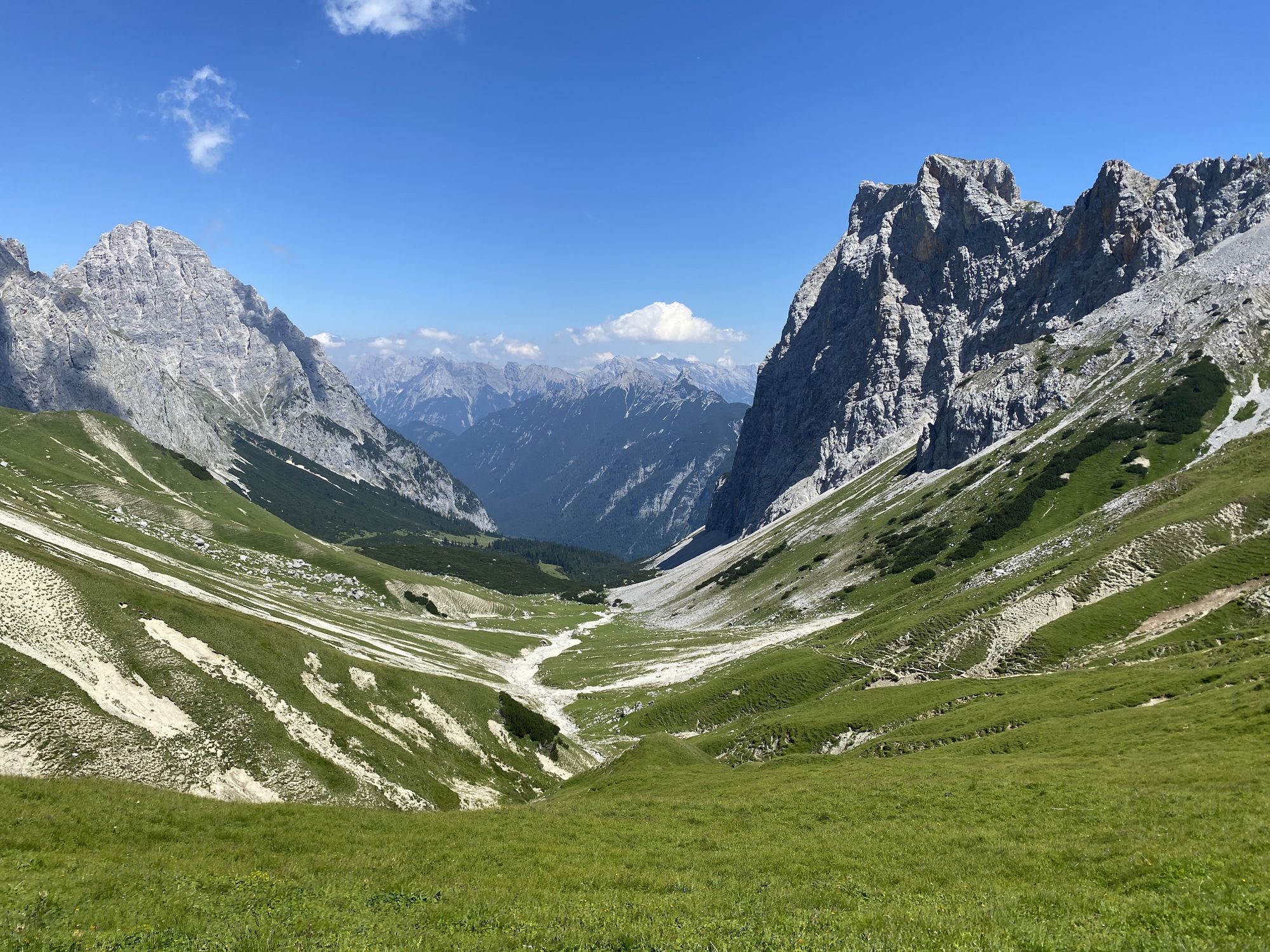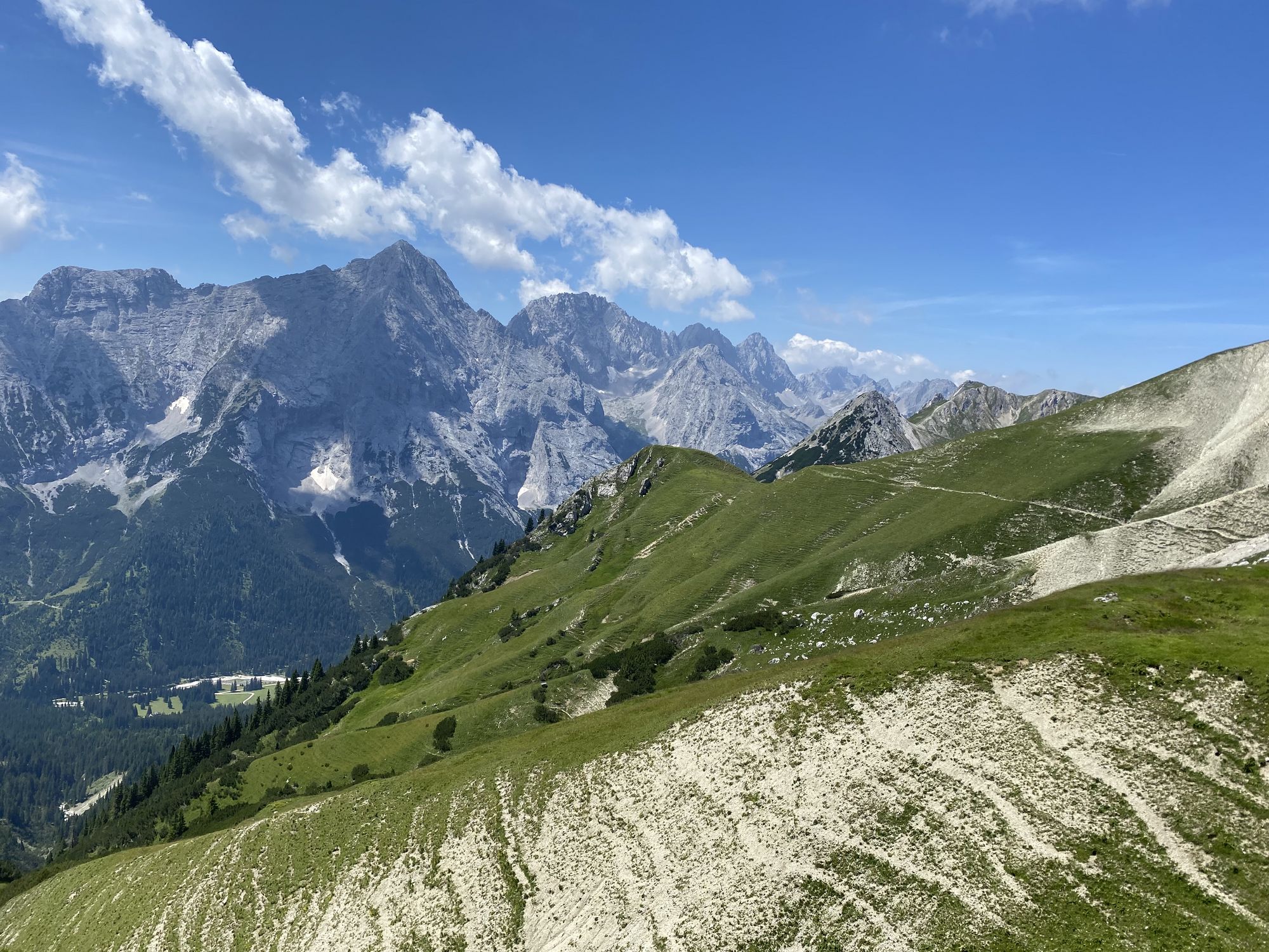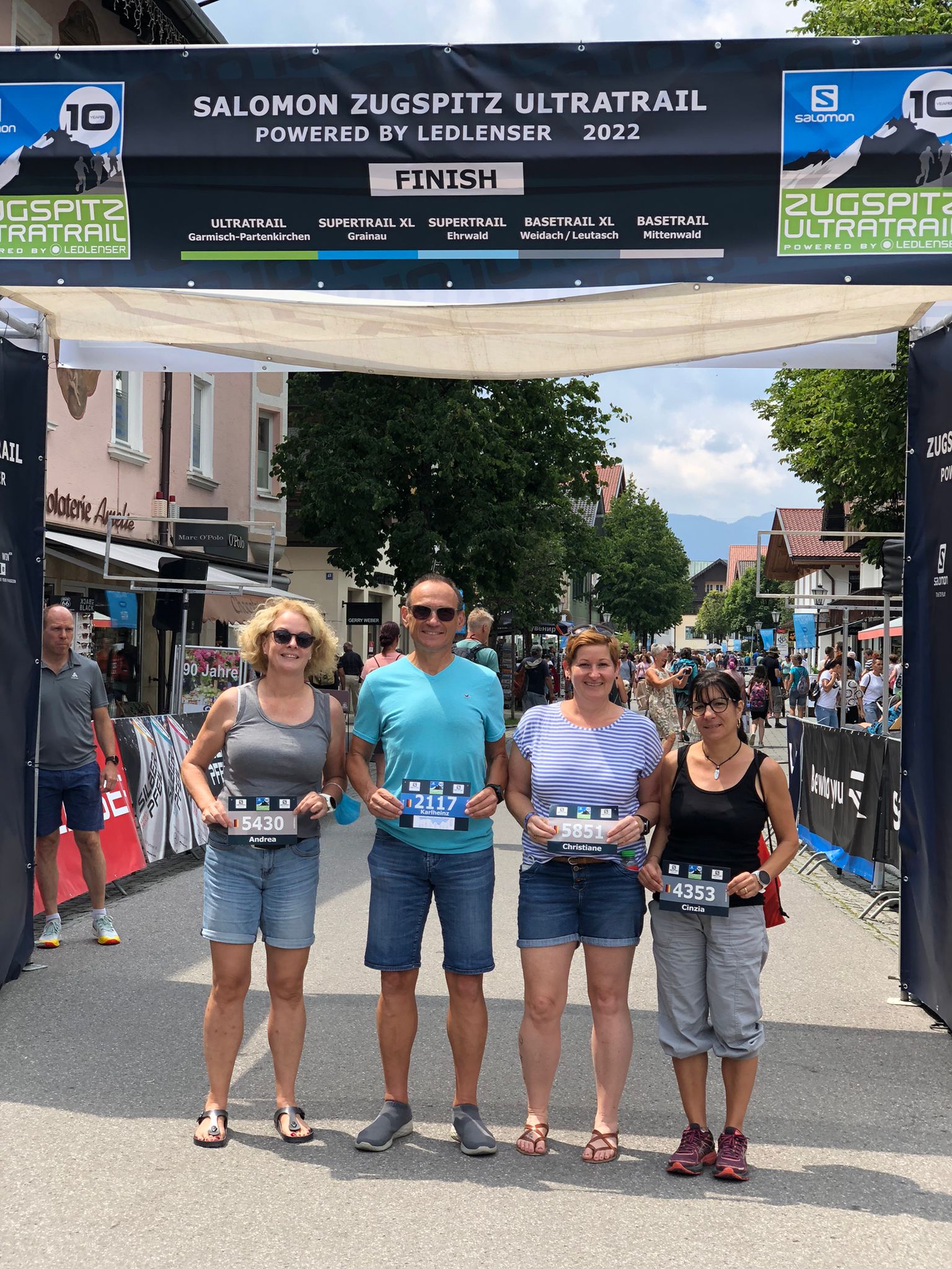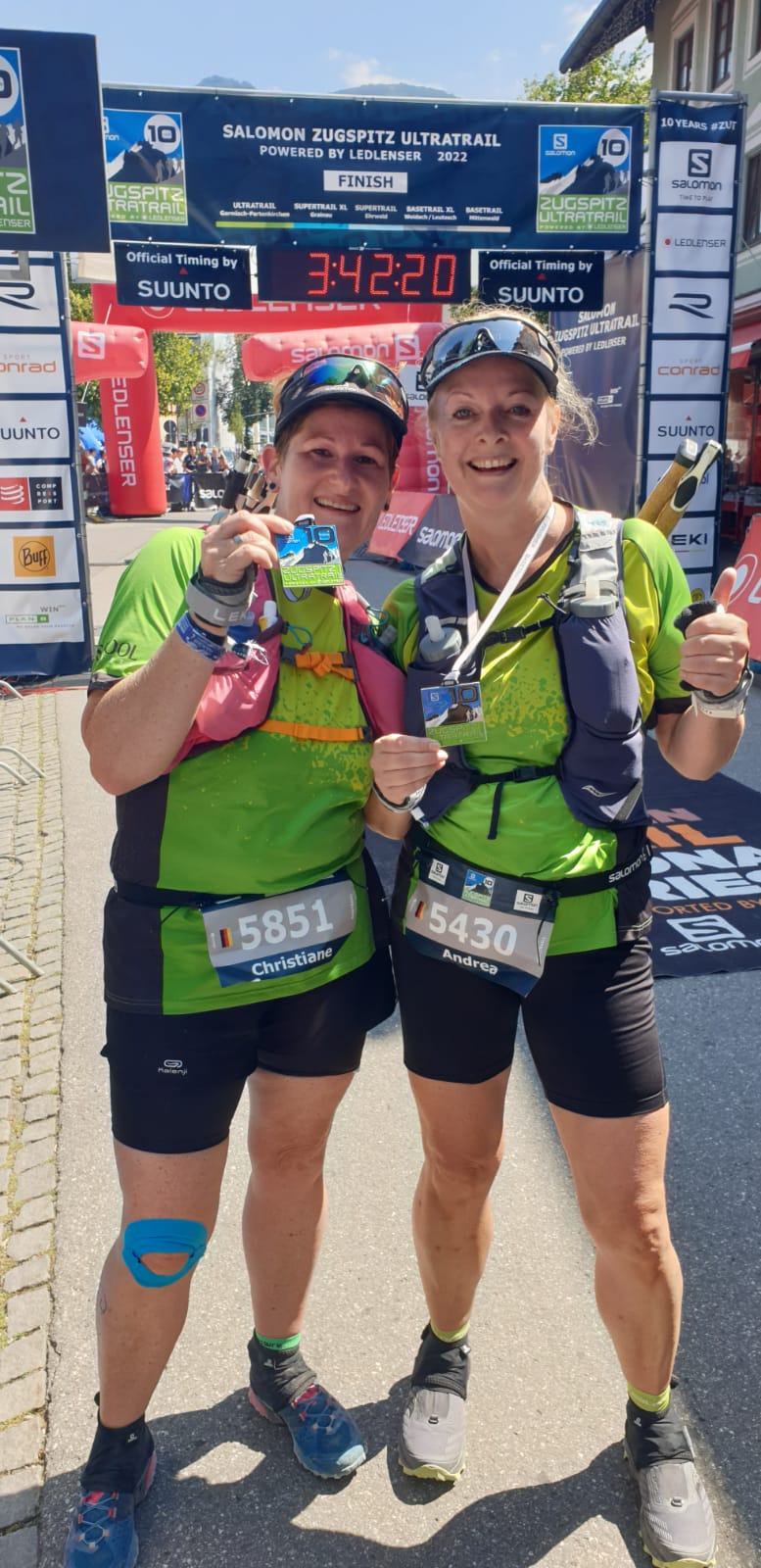 Im Startgebiet in Mittenwald herrschte großartige Stimmung. Die Bergwelt erstrahlte unter blauem Himmel im morgendlichen Sonnenschein und bot eine atemberaubende Kulisse. Mit ca. 1.200 Teilnehmern war es auch der mit Abstand größte Wettbewerb des Tages. Diese große Anzahl an Läuferinnen und Läufern mussten sich dann auch erstmal auf die schmalen Trails verteilen. So kam es zwischendurch natürlich auch zu kleineren Staus. Das tat der guten Stimmung jedoch keinen Abbruch. Beim Trailrunning in den Bergen ist die Zeit sowieso zweitranging. Am Ufer des Ferchensee entlang ging es hinüber bis zum Schloss Elmau, wo noch vor wenigen Tagen der G7-Gipfel ausgetragen wurde. Danach ging es nochmal hoch auf den Wamberg, mit 1.300 Metern der höchste Punkt dieser Strecke. Über die Bergstation der Eckbauer Bahn ging es dann steil bergab nach Garmisch. Michaela finishte in einer Zeit noch knapp unter 3 Stunden. Chrissi und Andrea waren durchweg gemeinsam unterwegs und freuten sich nach 3,5 Stunden darüber dieses wunderschöne Lauferlebnis mitgemacht zu haben.