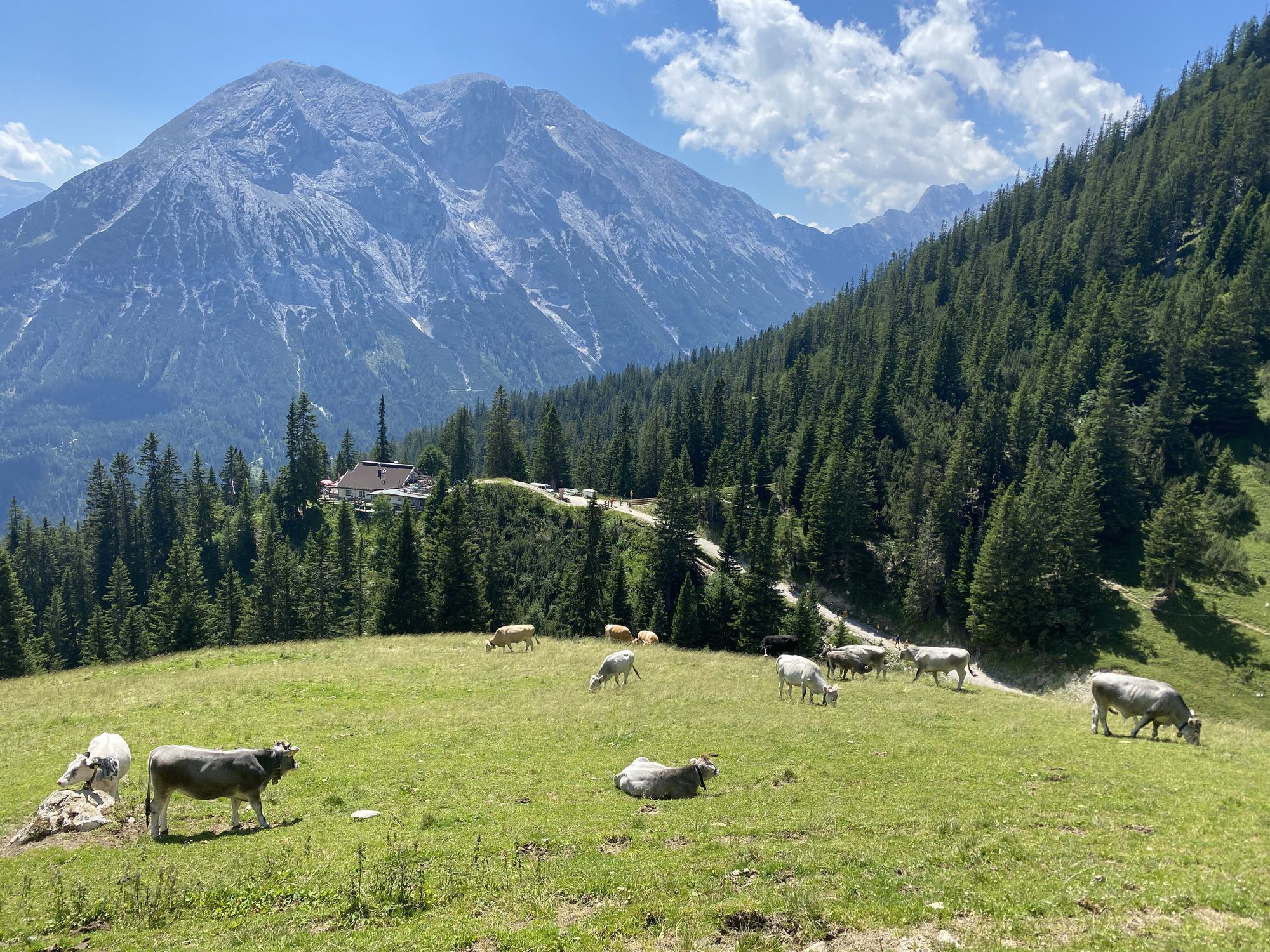 Leider lief es vom Start weg nicht gut für Jens. Schon nach dem ersten langen Anstieg hoch zum Osterfeldkopf fühlte er sich körperlich nicht gut. Das führte auch dazu, dass er in seiner eigentlichen Stärke, dem bergab laufen, unsicher agierte. Auch mit zunehmender Laufzeit besserte sich sein Wohlbefinden nicht. Es war keine Verletzung oder muskuläre Probleme, das Laufen und die damit verbundene körperliche Anstrengung wurden an diesem Tag einfach schon von Beginn an zur Qual. Da die Strecke im weiteren Verlauf nicht einfacher werden sollte und die Hitze weiter zunahm, entschied sich Jens folgerichtig nach ca. 40 km und 2.500 hm am VP 4 an der Gamsalm sein Rennen zu beenden. Petra, die Jens bei diesem Lauf komplett begleiten wollte, lief dann zwar noch weiter, verlor aber zunehmend die Motivation alleine laufen zu müssen und hatte zudem keine Lust in die Nacht hinein zu kommen. Sie beendete den Lauf an der Hämmermoosalm nach 60 km und 3.800 Höhenmetern in den Beinen.