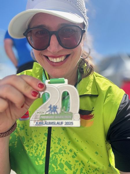 Laufhistorie: Seit 2015 bin ich leidenschaftliche Läuferin – angefangen hat alles als Ausgleich für Körper und Geist. Schon bald habe ich dabei meine Liebe für längere Distanzen entdeckt: Halbmarathon? Immer gerne – Marathon? Auch das, aber bitte in gemütlichem Tempo! Bis heute habe ich über 15 Halbmarathons und 5 Marathons glücklich ins Ziel gebracht. Weil ich in dunkleren Jahreszeiten meinen inneren Schweinehund aber nicht immer bezwingen konnte, kam 2024 der Entschluss: Ich schließe mich dem Lauftreff an! Seitdem ist Laufen ein fester und noch schönerer Teil in meinem Leben geworden.